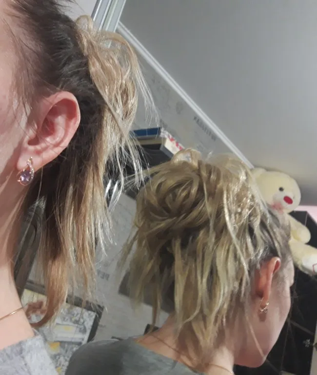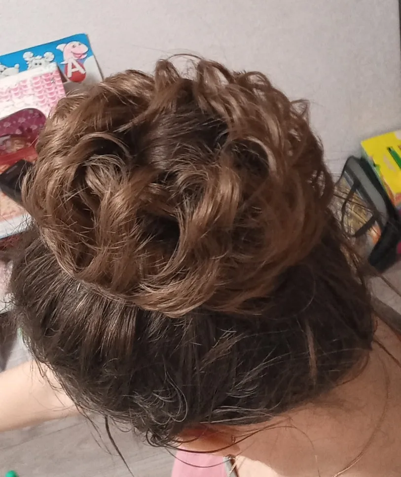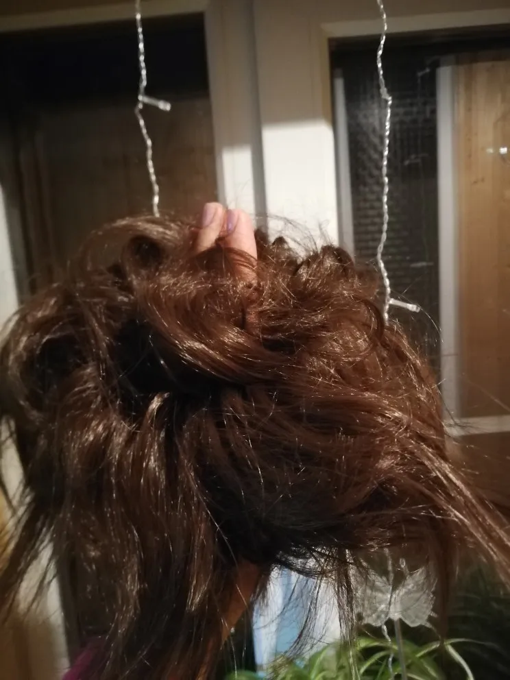 Нафотала в разных освещениях. Классный шиньон!! на мои волосы одевала в 2 обхвата. Рассчесался хорошо, лучше это делать крупной расческой и уже на хвосте. Подружка сказала выглядит абсолютно натурально, как будто накрутилась и собрала в хвост)) Я брала для повседневки, чтобы оживить Спорти стайл: быстро, удобно и главное интересно)) Ну в офис тоже можно. Свой цвет у меня сверху русый, а концы мелированные, как раз! На фото кончики и мои и шиньона. Рекомендую магазин!!! Большой выбор. заказала в черную пятницу 11.11.20 и из-за больших обьемов заказ только 19.12 пришел. Ну ничего страшного))))))