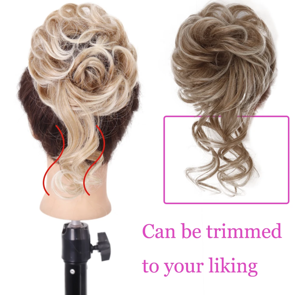 Шиньон MERISIHAIR для девушек, кудрявый шиньон с резиновой лентой, коричнево-серая синтетическая резинка для волос, накидка на пучок, хвост