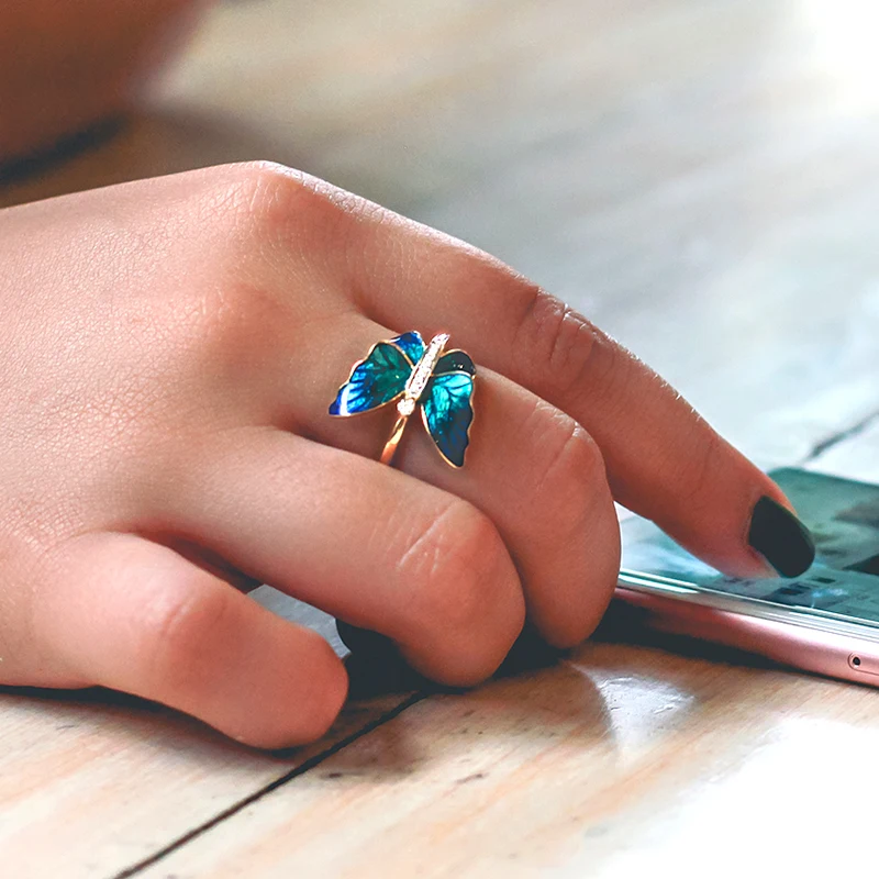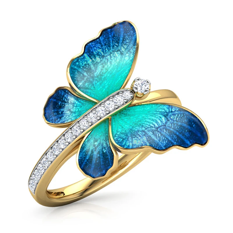 Модные милые кольца с летающей бабочкой для женщин роскошный желтый золотой цвет синяя картина маслом CZ кристалл свадебный подарок Z3M466