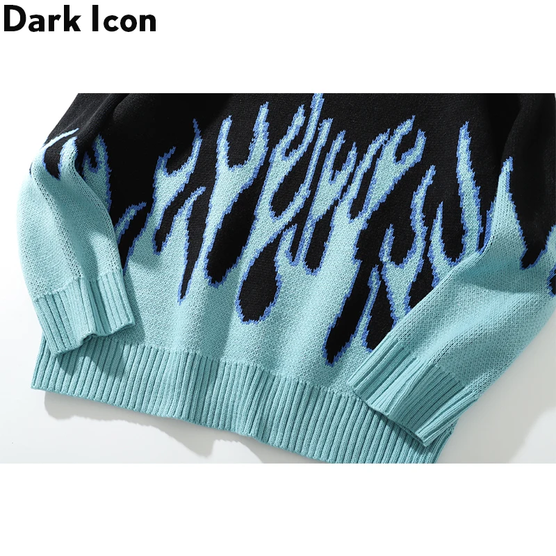 Мужской свитер темно-синего цвета с изображением пламени, уличная одежда для зимы 2019