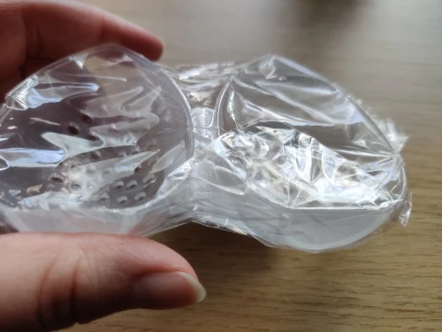 Точное описание продавца. Это твердый пластик, но очень управляемый. Он упакован в пузырчатую пленку и с другой защитой внутри. Нет связи с продавцом. Я рекомендую это. Продукт идеально сочетается с кистью для макияжа.