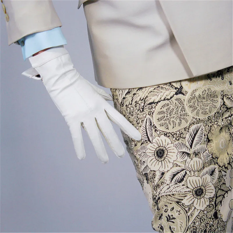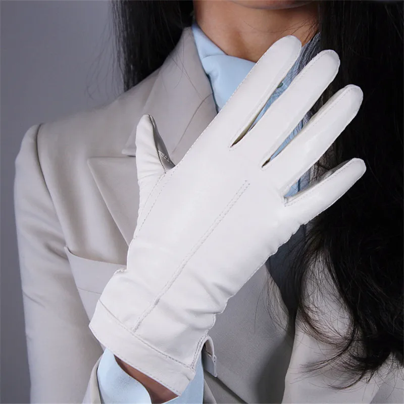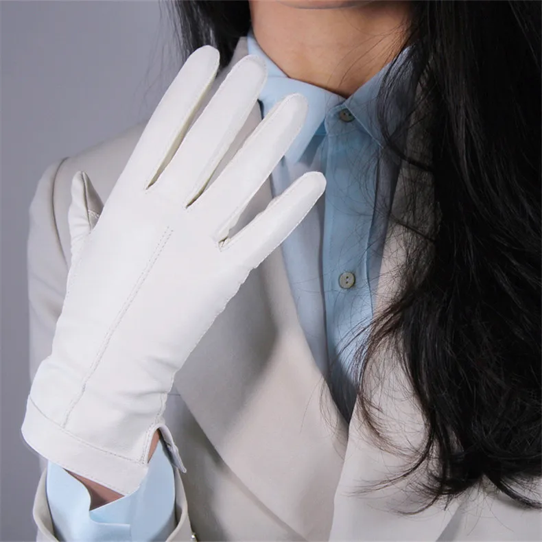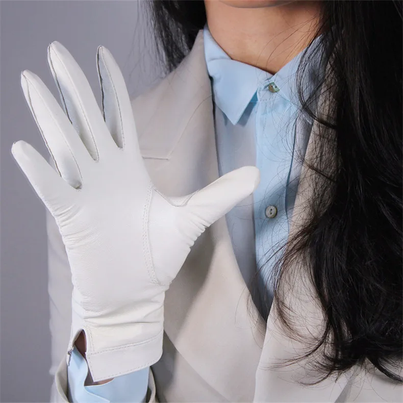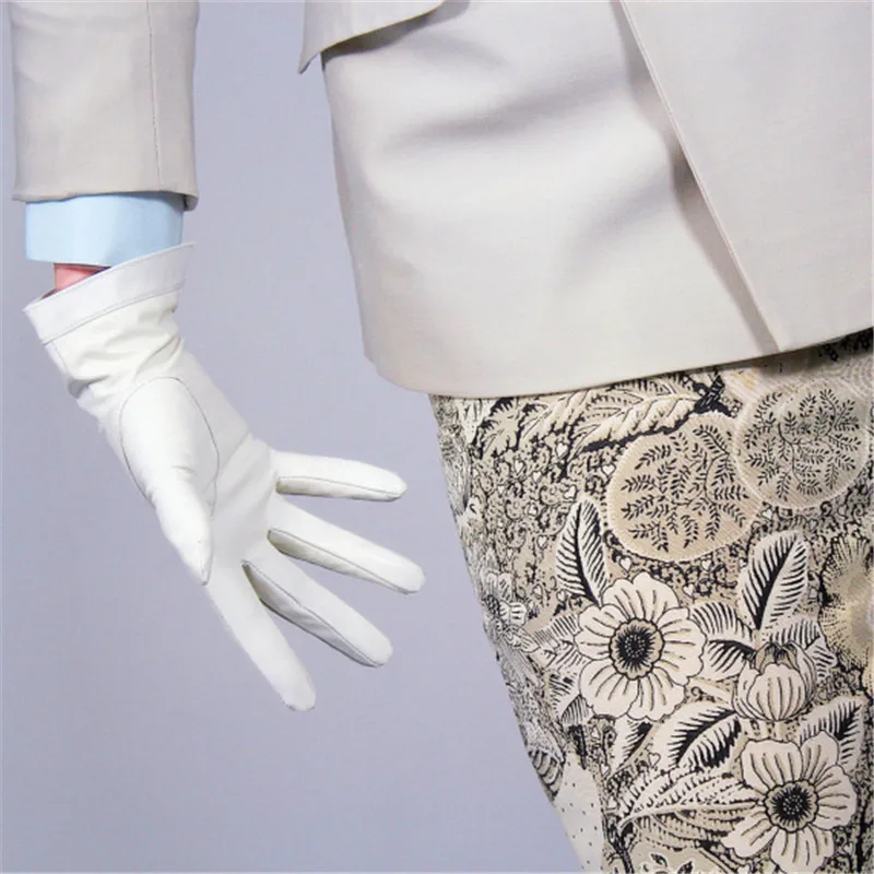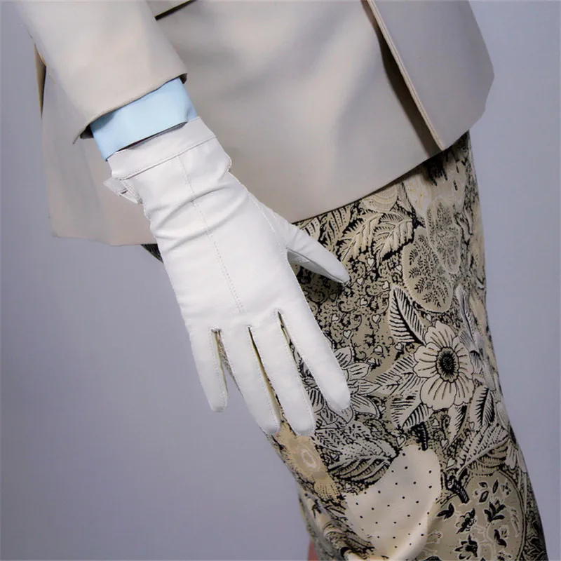 Перчатки из овчины для сенсорных экранов, 25 см, натуральная кожа, белые, короткие, с бархатной подкладкой, теплые женские перчатки WZP29