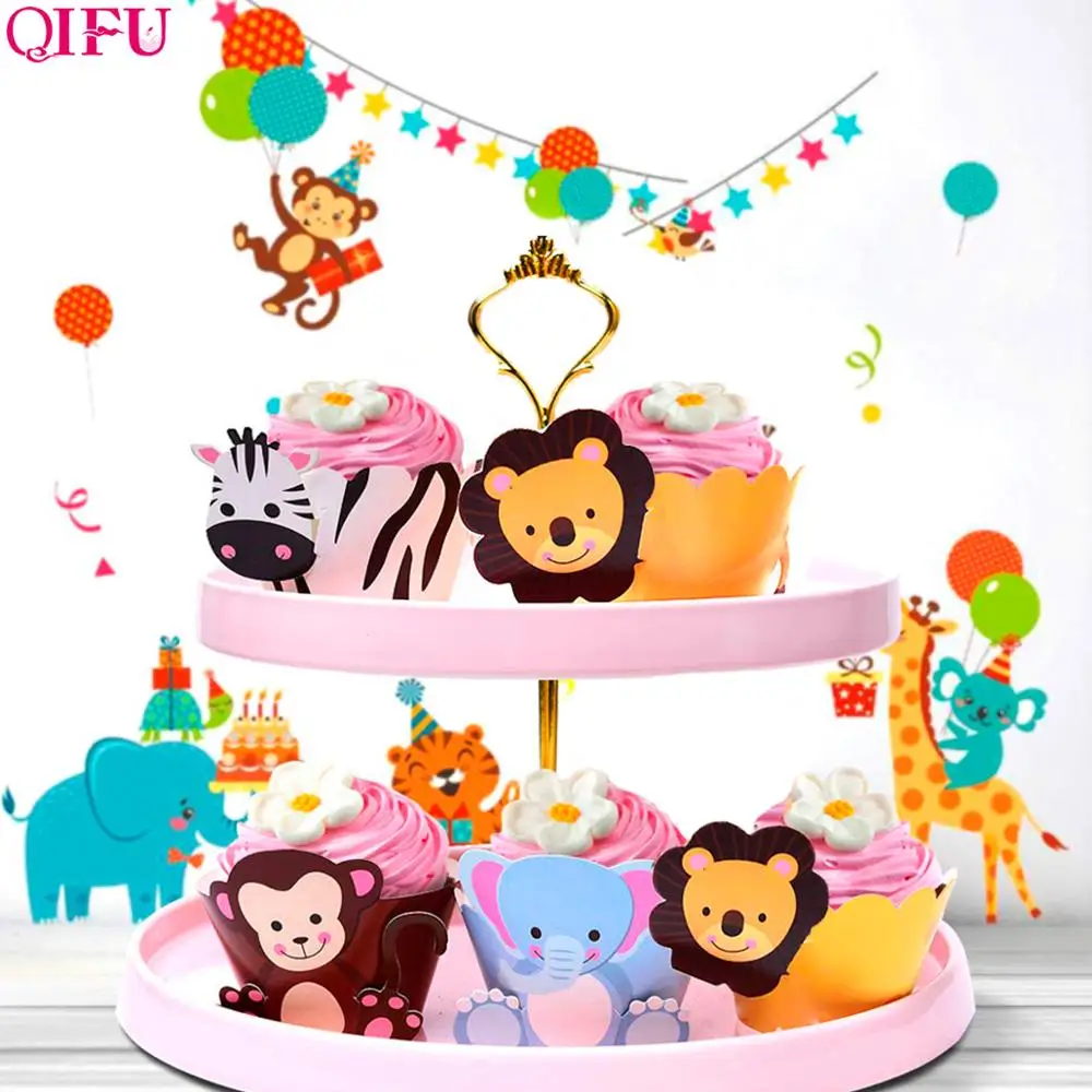 QIFU вечерние товары для леса, сафари, животных, баннеры, кексы, вечерние украшения на день рождения, Детские Вечерние Декорации в джунглях