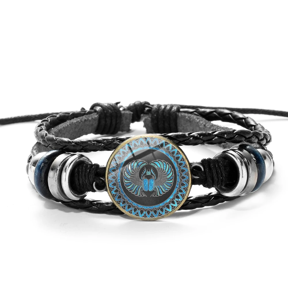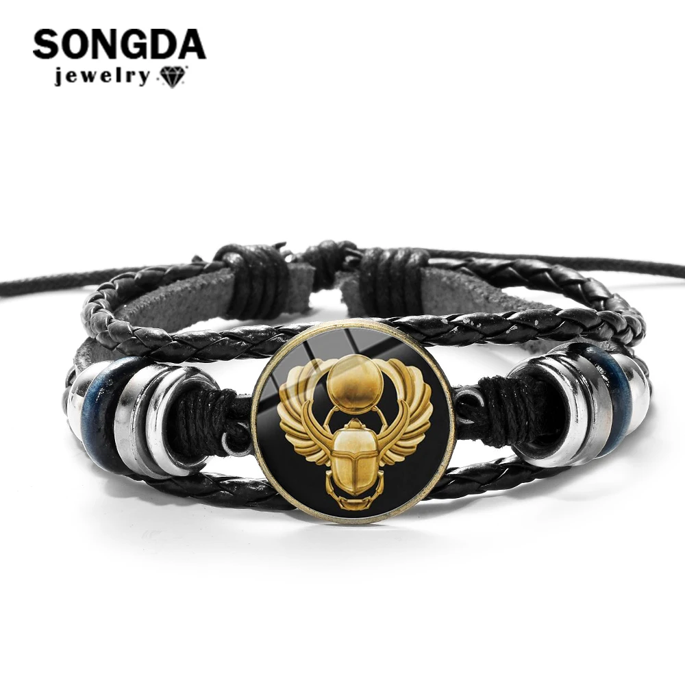 Женский плетеный браслет SONGDA, многослойный браслет из черной кожи с крестом золотого египетского скараба и жука, ручной работы, оптовая продажа