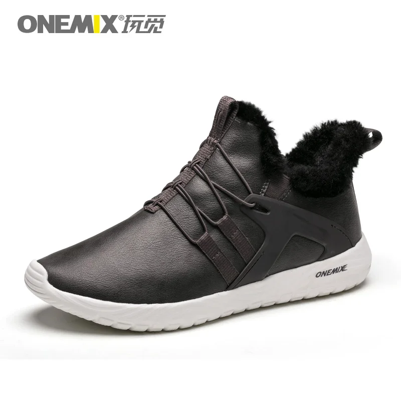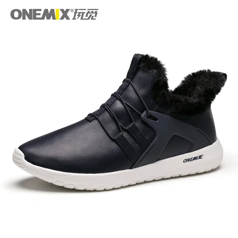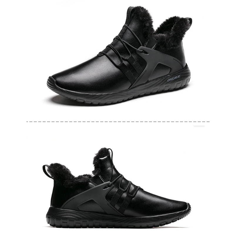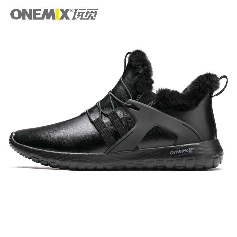 Мужские зимние кроссовки ONEMIX для бега, черные кожаные кроссовки ...