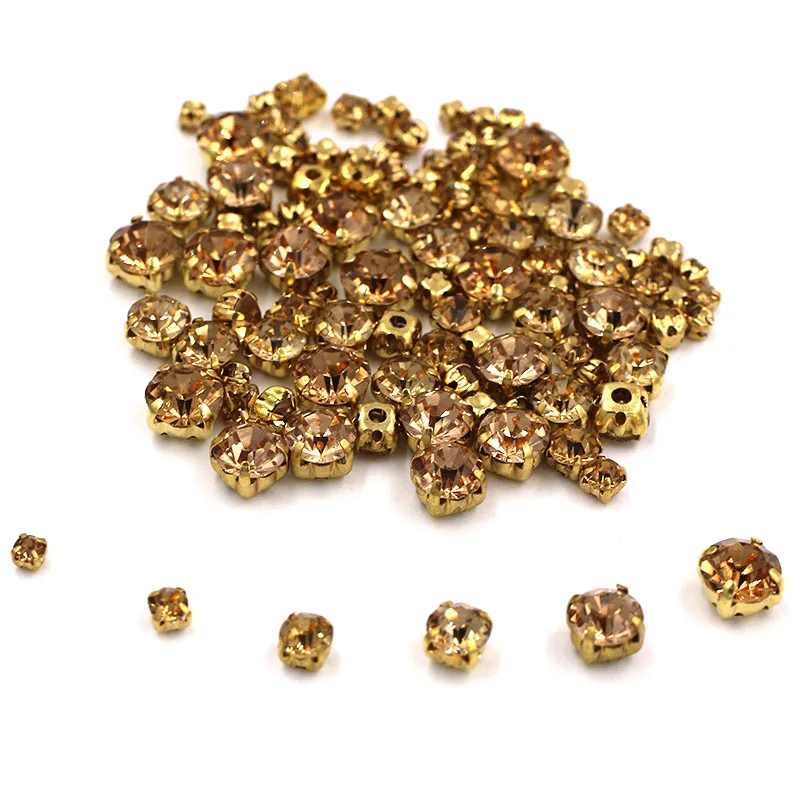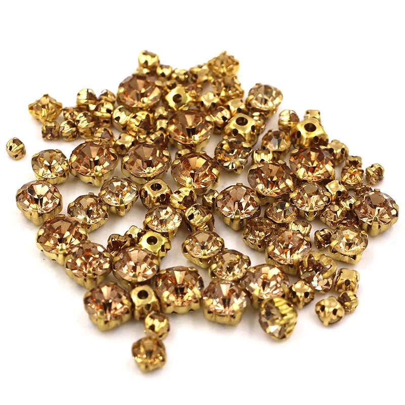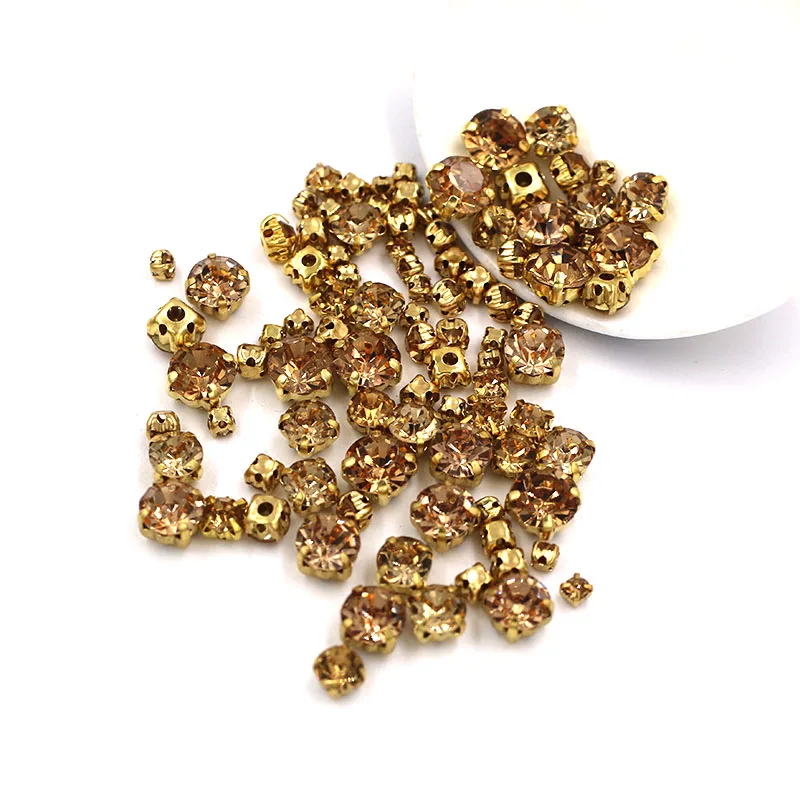 Новинка 100, шт./пакет, смешанные размеры, дымчато-желтые стеклянные стразы, одежда, свободные бусины, Золотая основа, для шитья, хрустальные стразы, сделай сам, свадебное платьеUSD 2,64Шт./упаковка