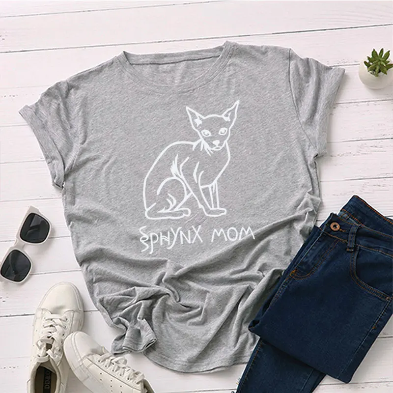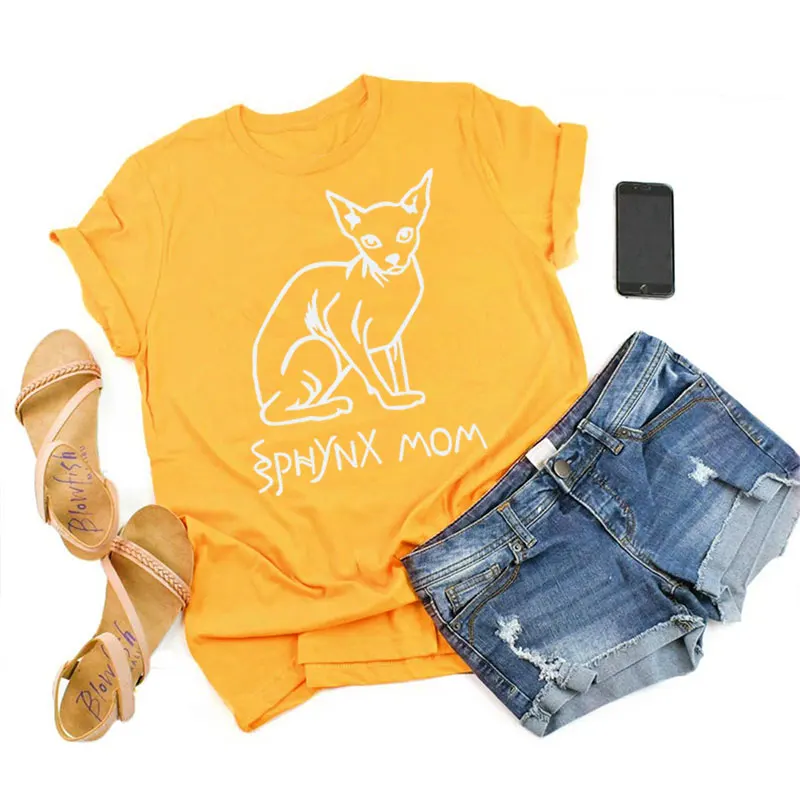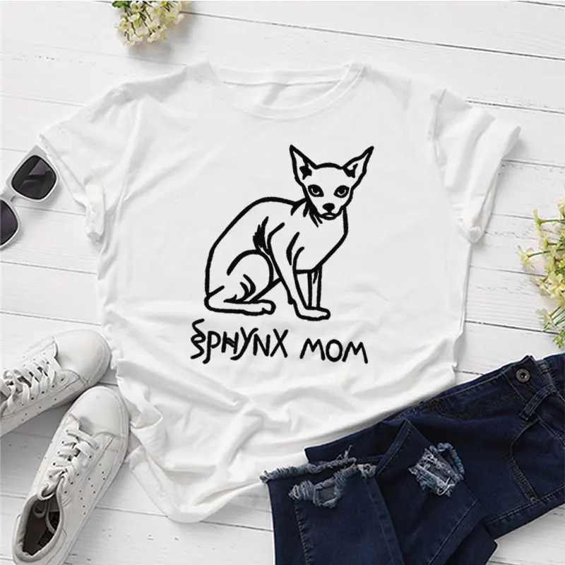 Сфинкс обувь для мам; Футболка эстетическое Kawaii кошки Lover Повседневная футболка натуральный хлопок девушка кепки, кепки в стиле футболка Топы с короткими рукавами, Прямая поставка
