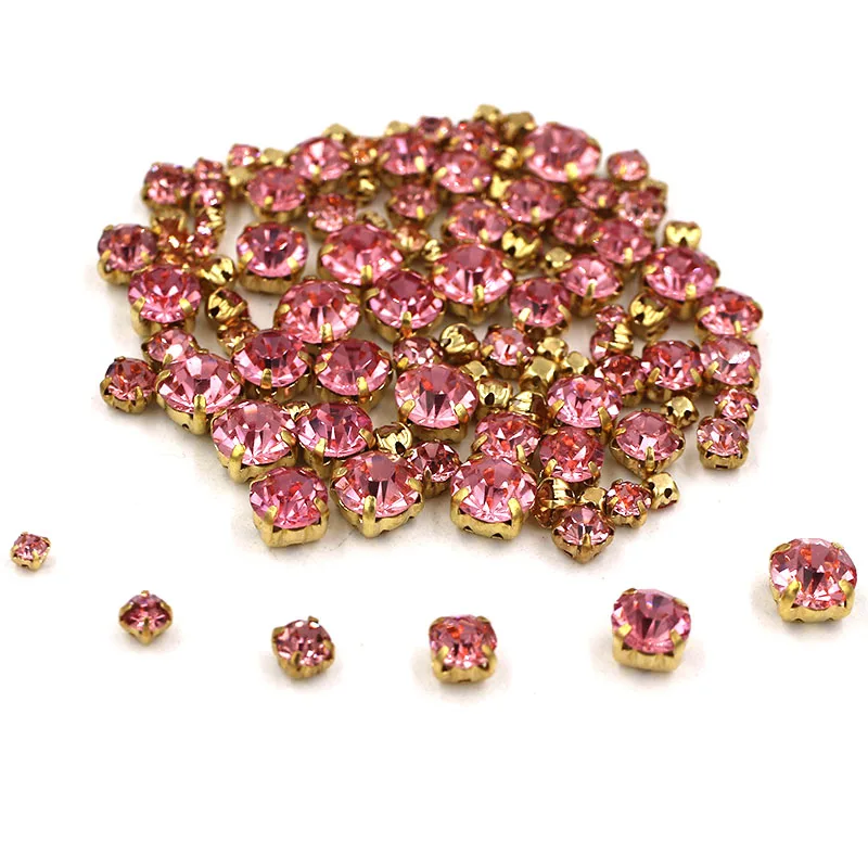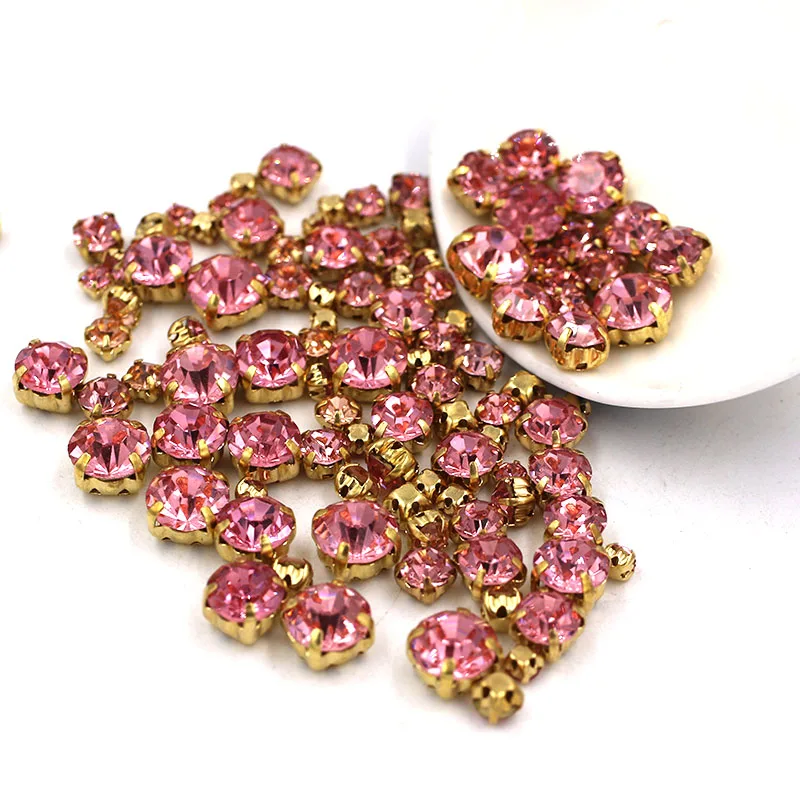 Горячая Распродажа 100 шт.пакет, составленных из предметов разных размеров с украшениями из розового стекла со стразами одежда свободные бусины золотая основа Швейные Кристаллы Стразы diy свадебное платье
