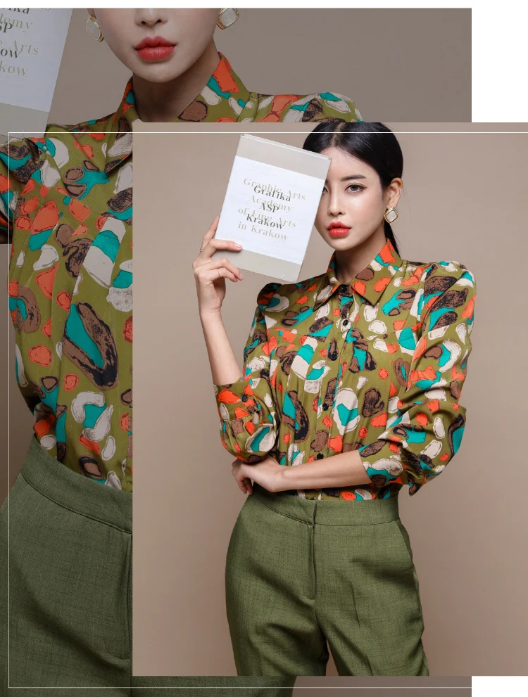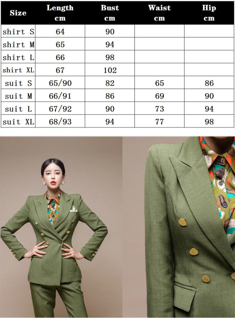 Новый осень-зима высокое качество женские костюмы с принтом рубашка Классический Воротник с приталенного блейзера, пальто и штаны, костюм из 2 предметов комплект для женщин SL324