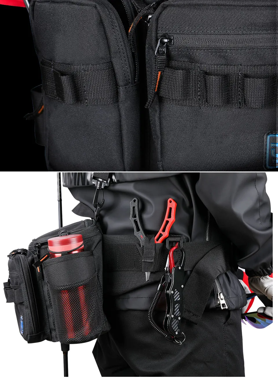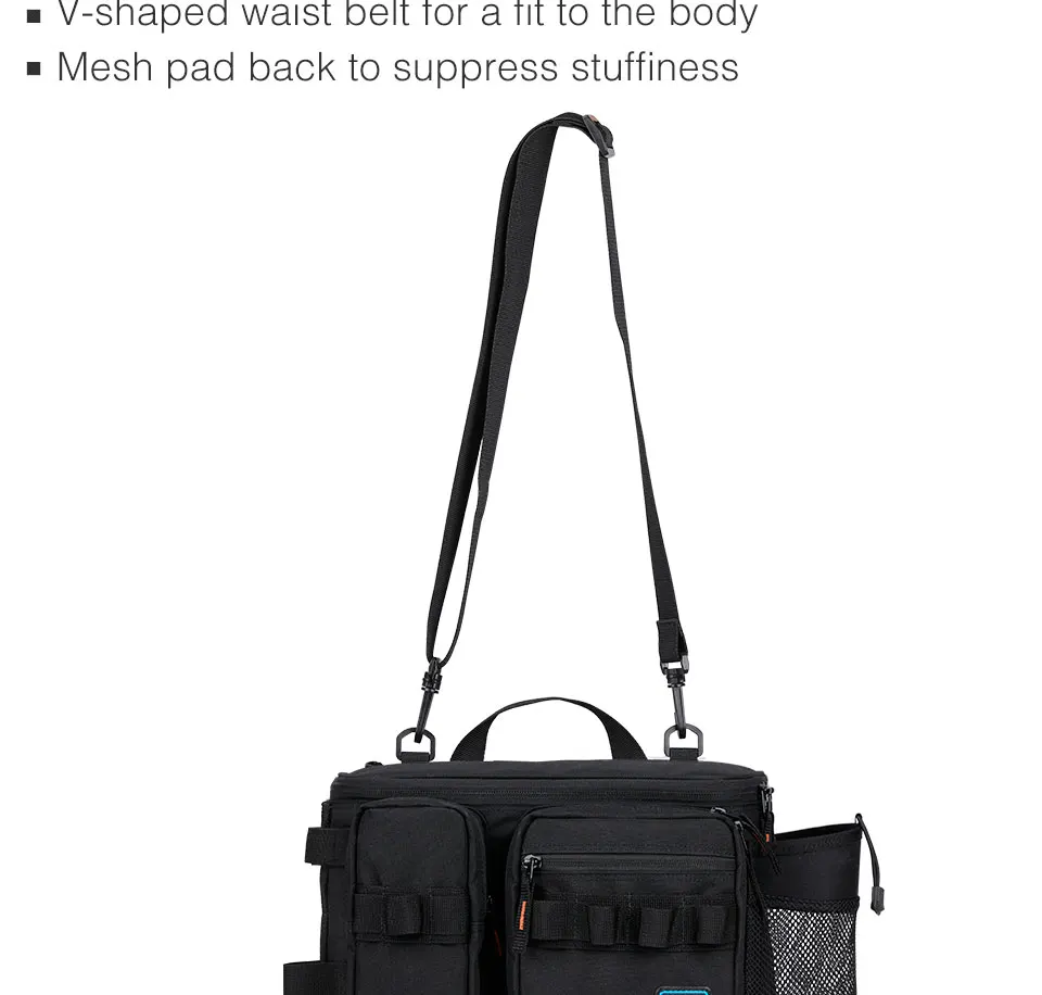 Характеристики продукта:1. Большая u-образная застежка для удобного просмотра внутри и снаружи2. С клапаном для легкого открытия и закрытия кармана с ковриком3. Прорезной карман идеально подходит для хранения мелких предметов4. Оснащен держателем стержня, который позволяет легко хранить запасные стержни и уменьшает wobbl5. Держатель для бутылок (до 600 мл), который легко вставляется и снимается одной рукой6. Держатель плоскогубцы, d-кольцо, ремень поддержки плеча, оборудование петли ремня7. V-образная форма поясного ремня для подгонки к телу8. Сетчатая подкладка для подавления заглушенияИнформация о продукте:1. Модель: RX1911(M) RX1911(XL)2. Размер: 30 × 12 × 19 см, 30 × 13 × 21 см3. Цвет: черный4. Вес: 0,63 кг, 0,68 кг5. Материал: нейлоновая ткань