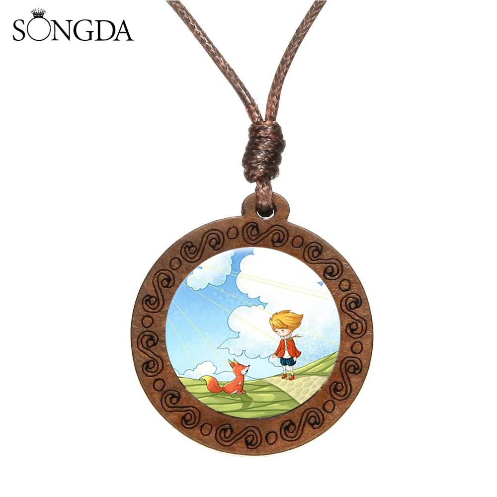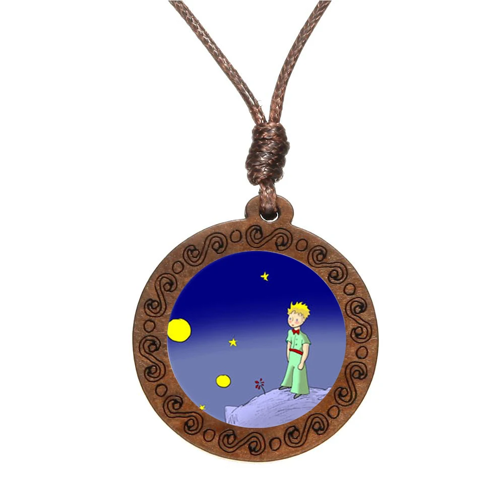 Классическое маленькое ожерелье Le Prince сказочное ожерелье с рисунком Маленького принца лисы розы деревянная подвеска Регулируемая Вощеная Веревка ювелирные изделия