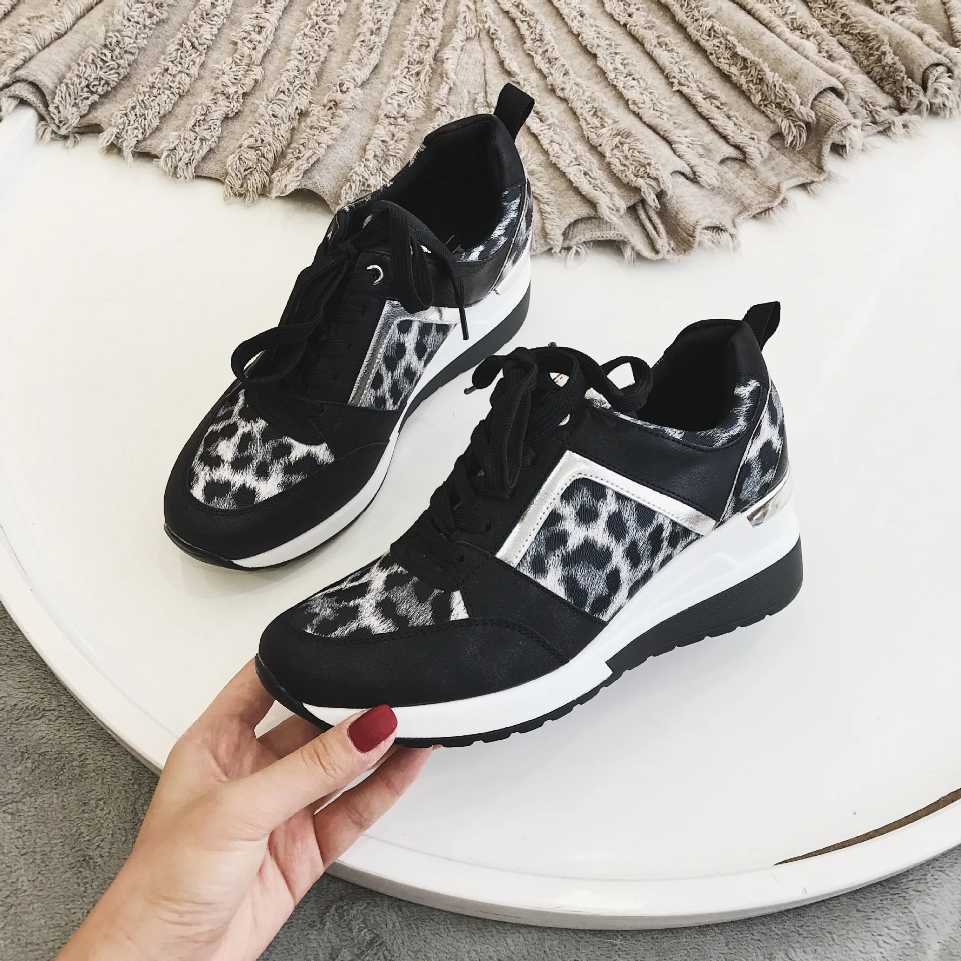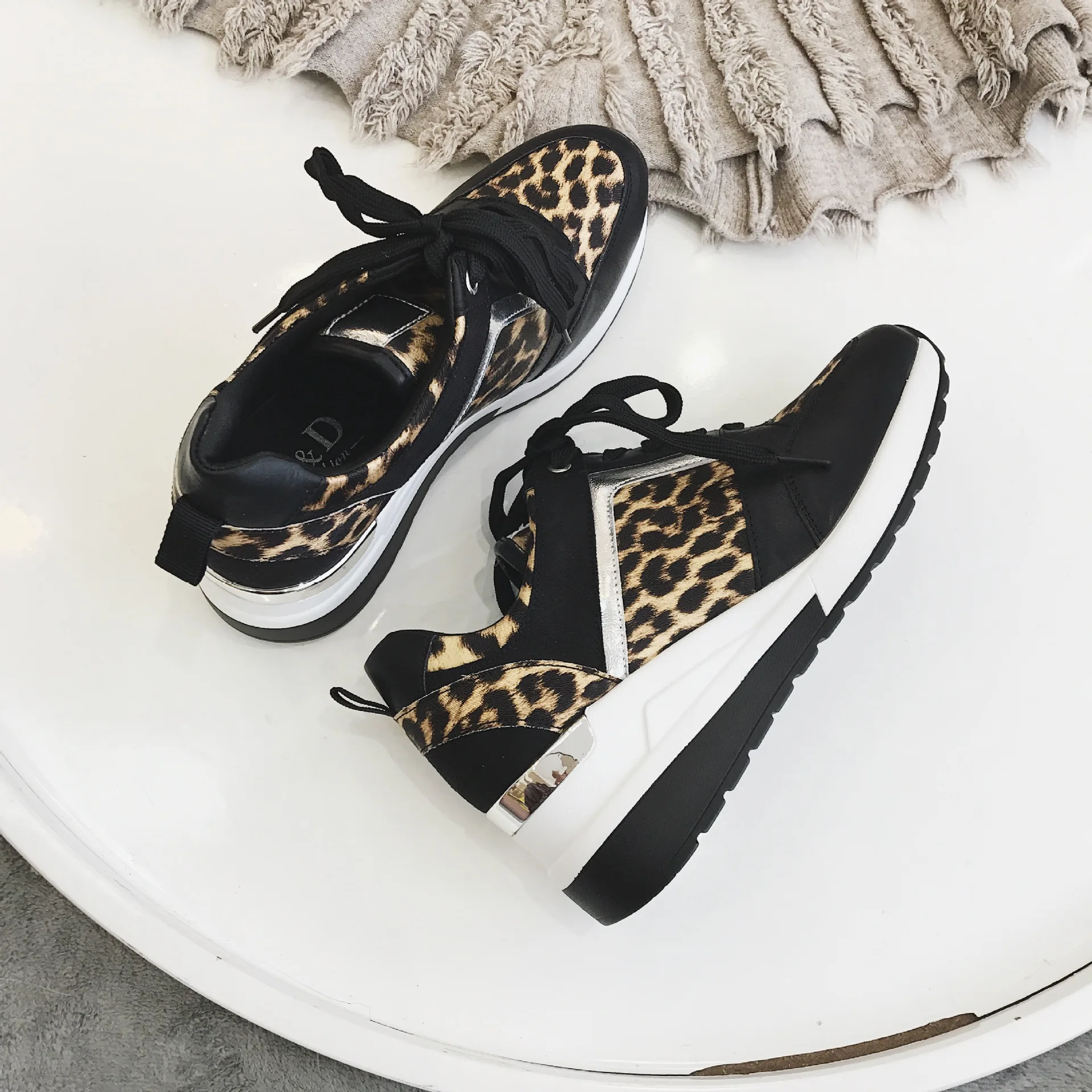 Fujinбелые туфли; Новинка; Леопардовая женская обувь; Дышащая однот...