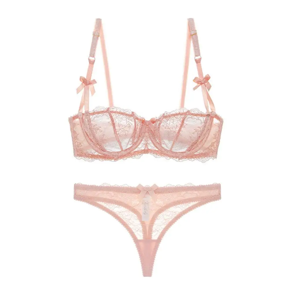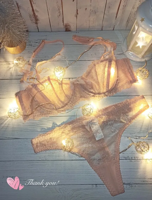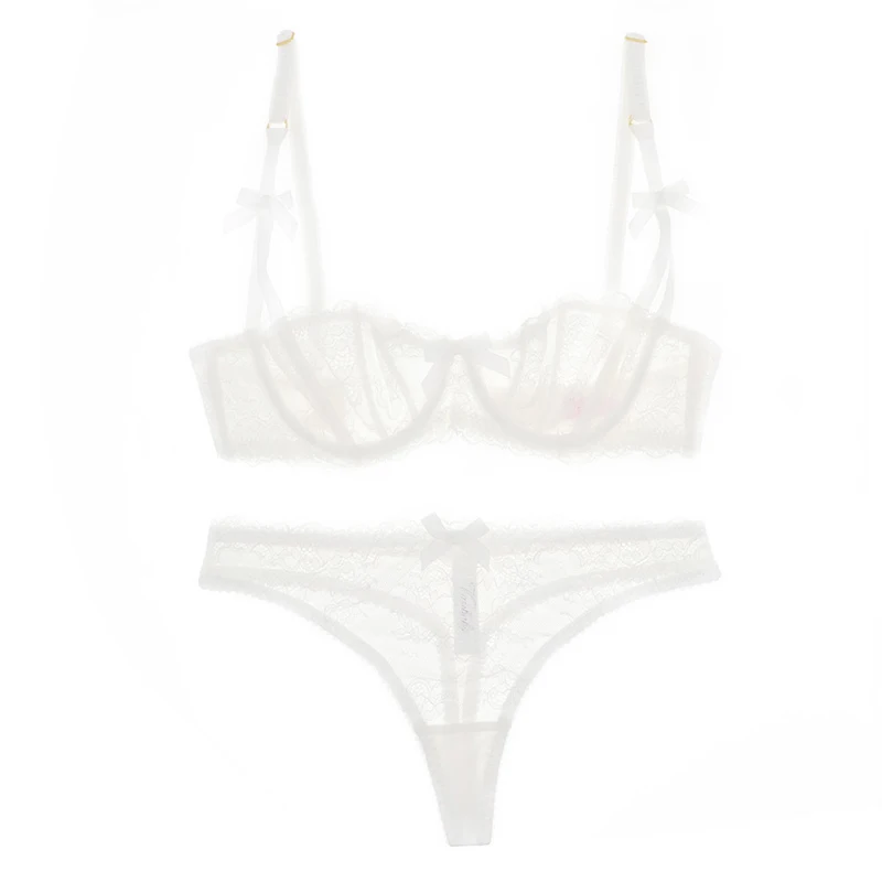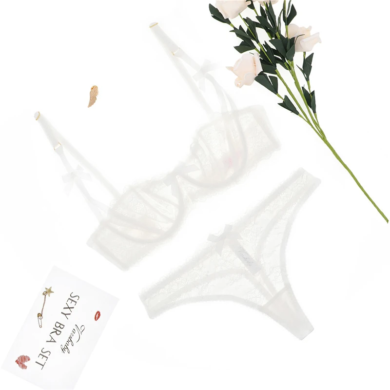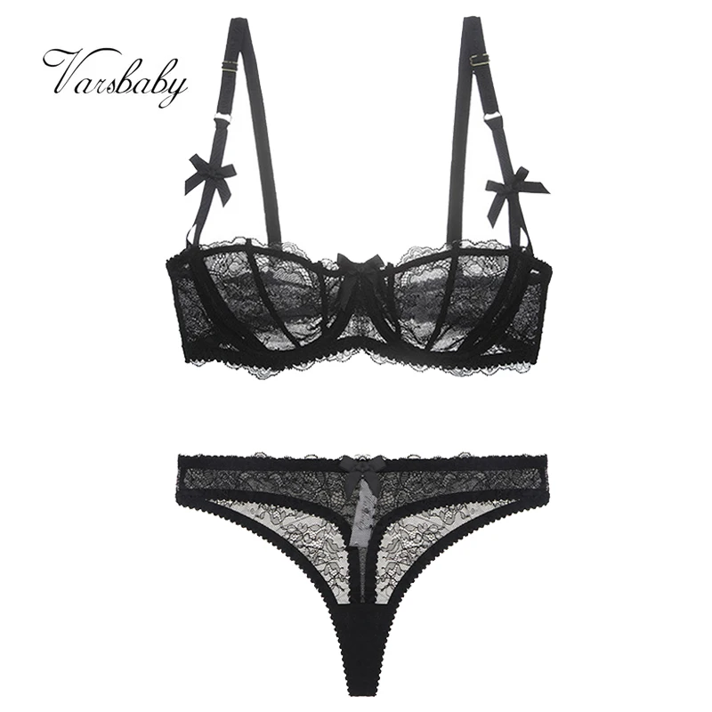 Комплект женского кружевного нижнего белья Varsbaby, бюстгальтер без подкладки и стринги, прозрачный, чашка ABCD