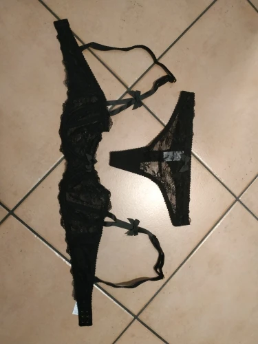 Комплект ОЧЕНЬ красивый и качественный, продавец очень хороший, по моей просьбе отправил не трусы-стринги, а обычные от какого же комплекта. К сожалению я не поверила отзывам и заказала свой размер, а не больше. Оформила возврат денег и товара, на фотографии не видно, но они вываливаются, ходить в нем сложно. Будь размер побольше было бы идеально