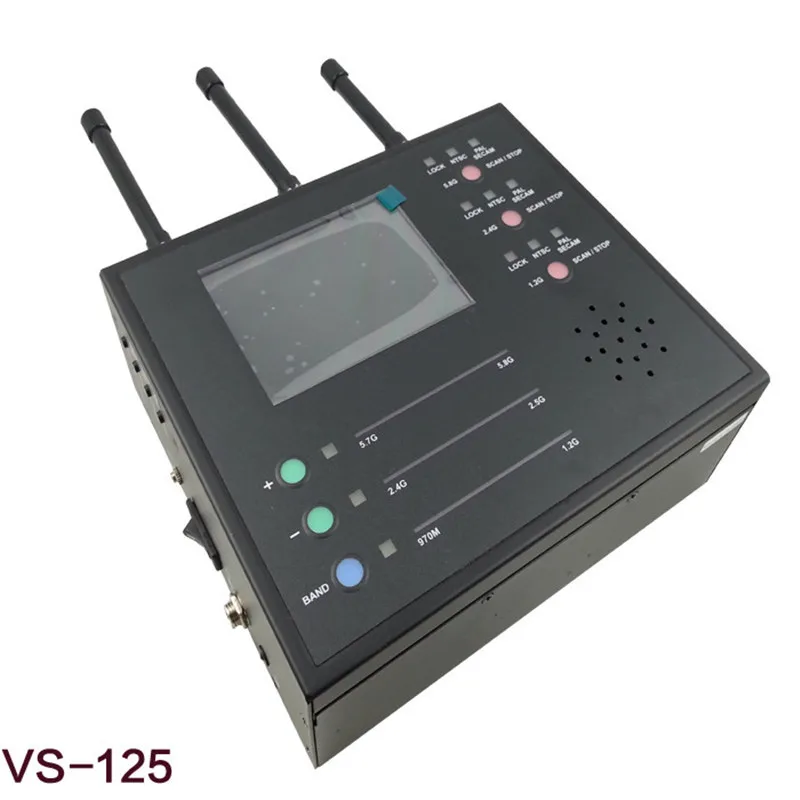 Vodasafe профессиональная камера сканер VDS-125 Чехлы трех частотных диапазонах: 1,2 ГГц, 2,4 ГГц, 5,8 ГГц. Это прорывное изобретение может одновременно обнаруживать и отображать A/V нескольких камер на нескольких частотах. Это единственная функция и функция.