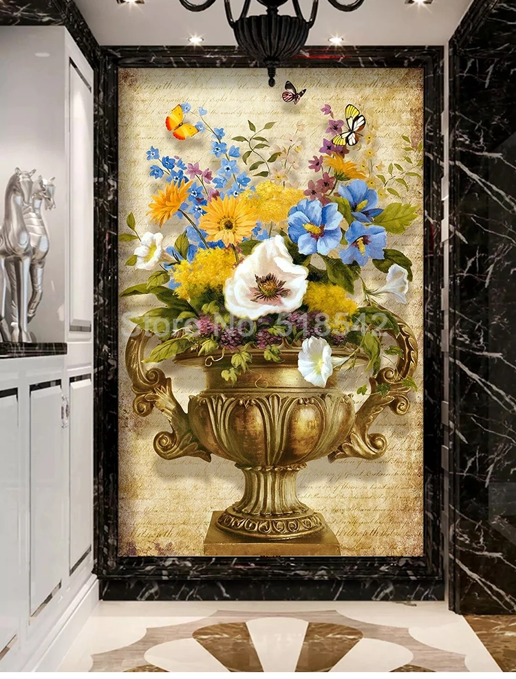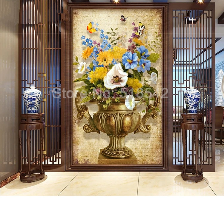 Настенная бумага на заказ 3D рельефная Цветочная ваза вход коридор ...