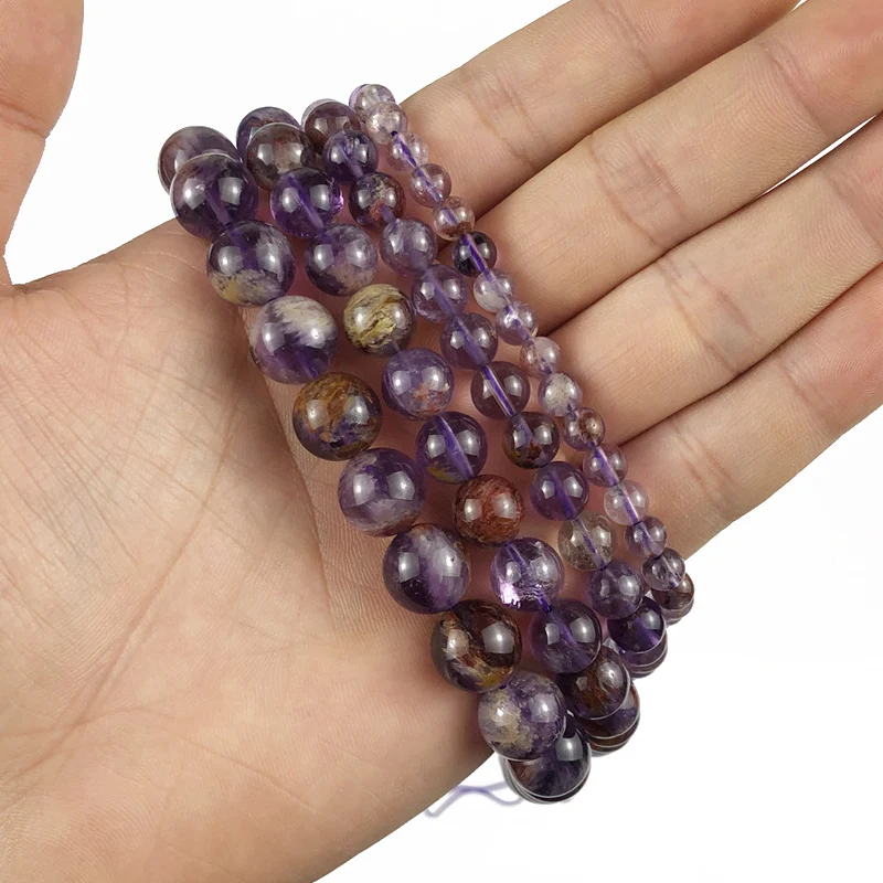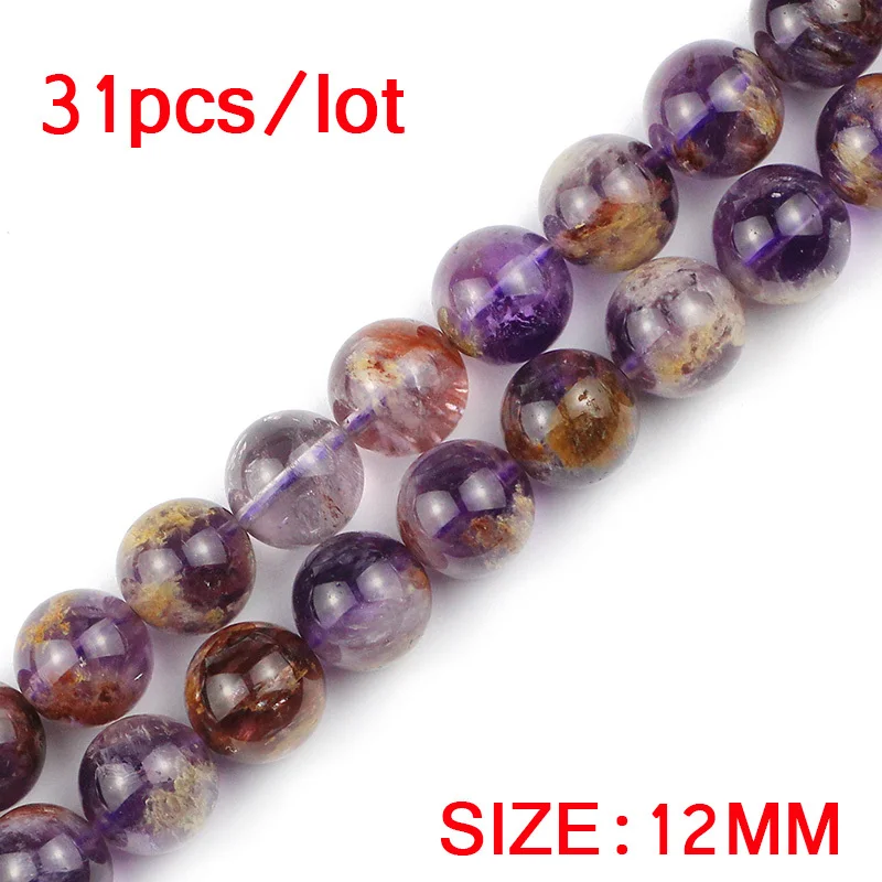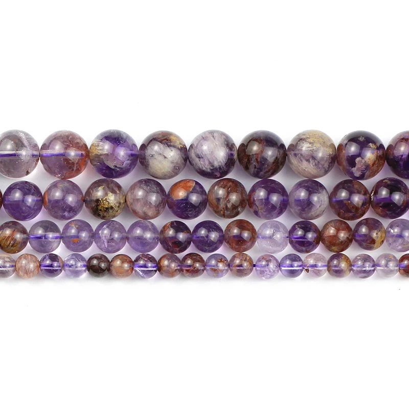 Натуральный камень, Фиолетовый Кристаллы Хлорита 6/8/10/12 мм Круглые прокладки бусины россыпью для изготовления ювелирных изделий, браслетов, аксессуаров «сделай сам» 15 дюймов Длина: 15,5 дюйма/нить 6 мм: 64 шт; 8 мм: 47 шт; 10 мм: 38 шт; 12 мм: 31 шт