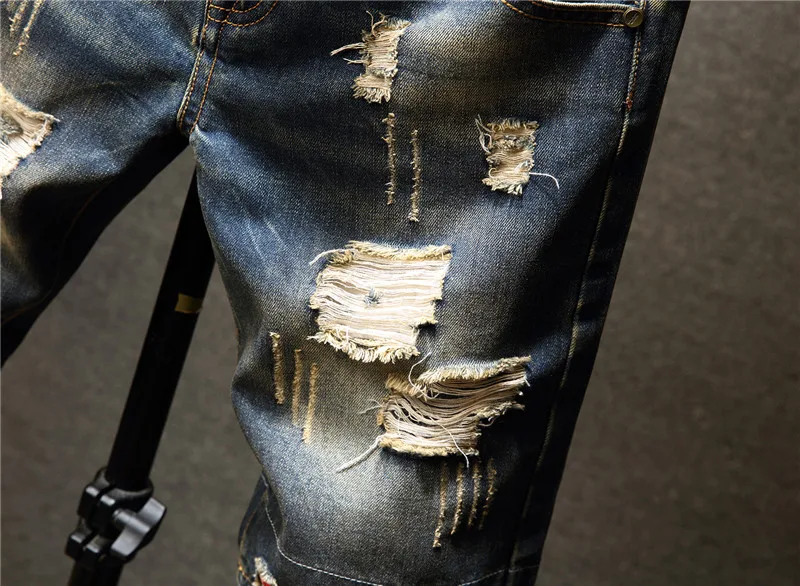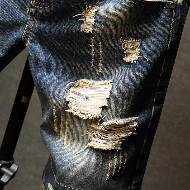Рваные джинсы мужские с дырками, модные шорты-бермуды в винтажном стиле, уличная одежда, прямые шорты из джинсовой ткани, 38, 40, лето, размера плюс