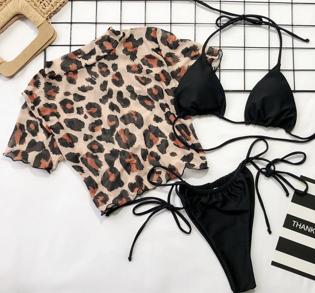 3 шт. женский леопардовый купальник-бикини, купальный костюм, пляжн...
