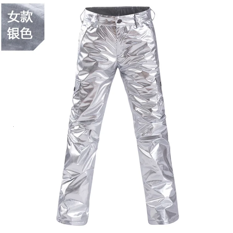 Женские зимние лыжные штаны, серебристые и золотистые утепленные штаны для улицы, для холодной и теплой погоды, 2019
