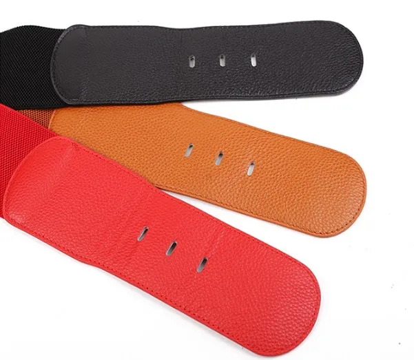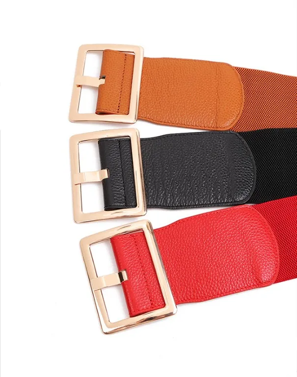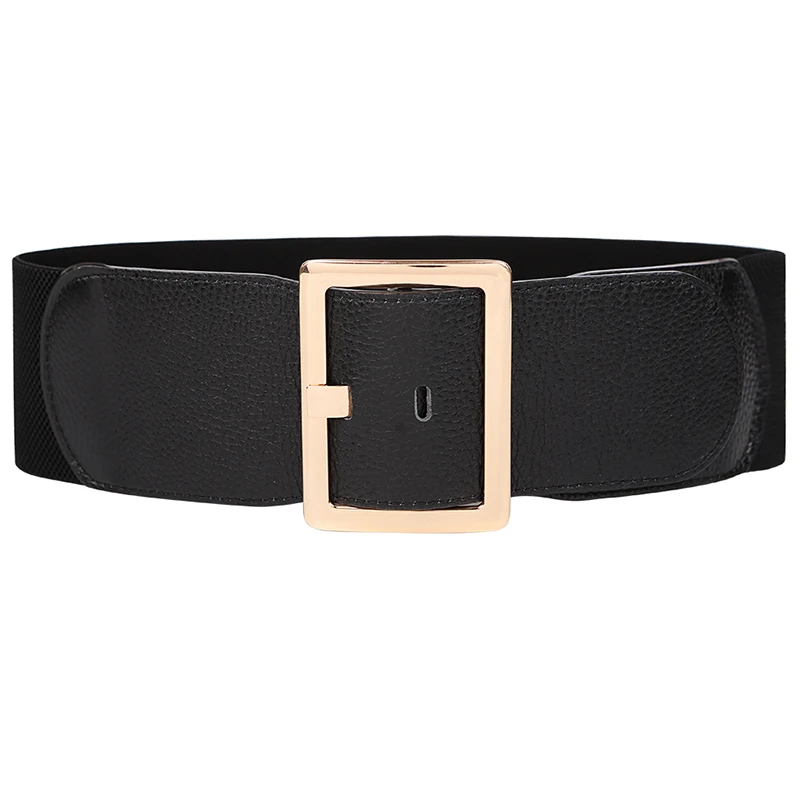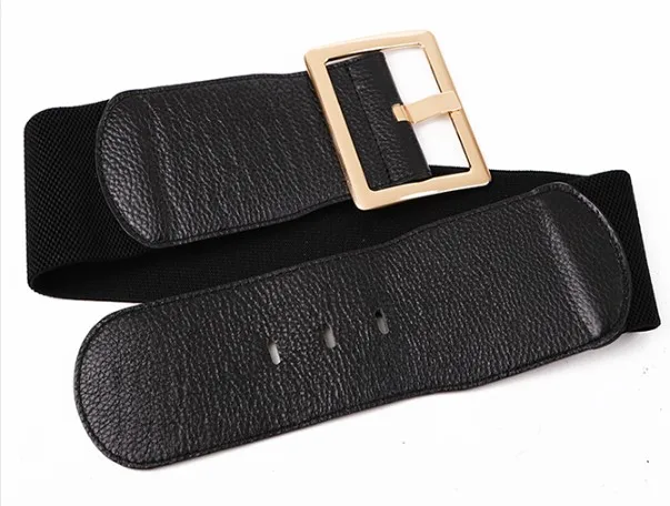 Женский широкий ремень из натуральной воловьей кожи, широкий пояс из воловьей кожи с золотой пряжкой, черный, для платьев, эластичный пояс