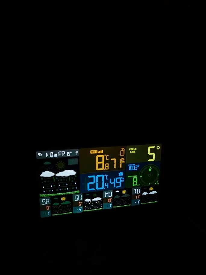 Вся информация легко читается под любым углом обзора, дисплей с большим цифровым номером на большом экране.Особенности:Простое соединение между станцией wather и вашим смартфоном с настройкой видео. Сбор данных из Интернета, более удобный и точный.Автоматическая настройка времени и даты из интернета. Время в дополнительном формате 12/24 часов. Может использоваться как ежедневная сигнализация с функцией повтора сигнала. День недели на 8 языках по выбору пользователя: английский, немецкий, итальянский, французский, испанский, голландский, датский и русский.Сегодня и в течение следующих 4 дней прогнозирование погоды. Может отображать температуру и влажность в помещении/на улице (°C или °F), барометрическое давление, скорость ветра и оповещение о заморозке.Скорость ветра в км/ч или миль/ч. Отображение минимального/максимального значения влажности и температуры воздуха. Отображение тренда давления воздуха, температуры и влажности.4 уровня яркости подсветки выбирайте с помощью адаптера питания. Подсветка поддерживает освещение только с помощью адаптера питания. Если Метеостанция работает только с аккумулятором, светильник ка активна только в течение 15 секунд нажатием кнопки светильник», может быть немного трудно увидеть дисплей без подсветильник Ки.Подключение до 3 удаленных датчиков, отображение данных о погоде в 3 комнатах. (В комплекте только 1 датчик). Дальность передачи 60 метров на открытой местности.USB-порт для зарядки электронных устройств.Характеристики:Модель: FJW4Основной Материал: АБС-пластик----------------------------------------------------------------Источник питания:Тип штекера:Вилка США, 110-130 вАдаптер питания: DC5V 1.2A (входит в комплект)Совместимый аккумулятор: 2 * LR6 AA (не входит в комплект)----------------------------------------------------------------Беспроводной наружный Датчик:Диапазон измерения наружной температуры: -40 ℃ (-4 ℉) ~ 70 ℃ (158 ℉)Диапазон измерения влажности вне помещения: от 20% до 95% относительной влажностиЧастота передачи данных: 433 МГцДиапазон беспроводной связи: макс. 60 метров (Открытая Зона)Совместимый аккумулятор: 2 * LR6 1,5 В (размер AA) (не входит в комплект)Класс защиты: IPX4Беспроводной наружный Датчик: 9,6*3,4*5 см/3,8*1,3*2 дюйма----------------------------------------------------------------Размер метеостанции WiFi: 20,5*3*13 см/8,1*1,2*5,1 дюймаВес изделия: 580 г/20,5 унцииПосылка: 24,9*16,6*7 см/9,8*6,5*2,8 дюймаВес посылка: 685 г/24,2 унцииПосылка тация:1 цветная Метеостанция WiFi1 беспроводной наружный датчик1 * Адаптер питания1 * Руководство пользователя (английский и немецкий, французский, итальянский, испанский)Примечание:Метеостанция была обновлена, и к соединению добавлен модуль Bluetooth. Легче и удобнее подключать и использовать приложение. Чтобы отличить новую версию, товары в заказе, который мы отправляем, не будут иметь lo-go.Батарейки АА в комплект не входят.