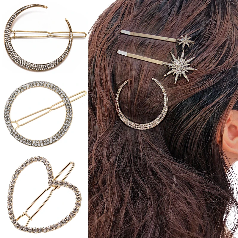 Модные с геометрическим рисунком с изображением Луны и звезд, заколка для волос, сплав Стразы заколки для волос для женщин сторона заколки для волос для девочек, женские аксессуары для волос зажим для волос Головные уборы