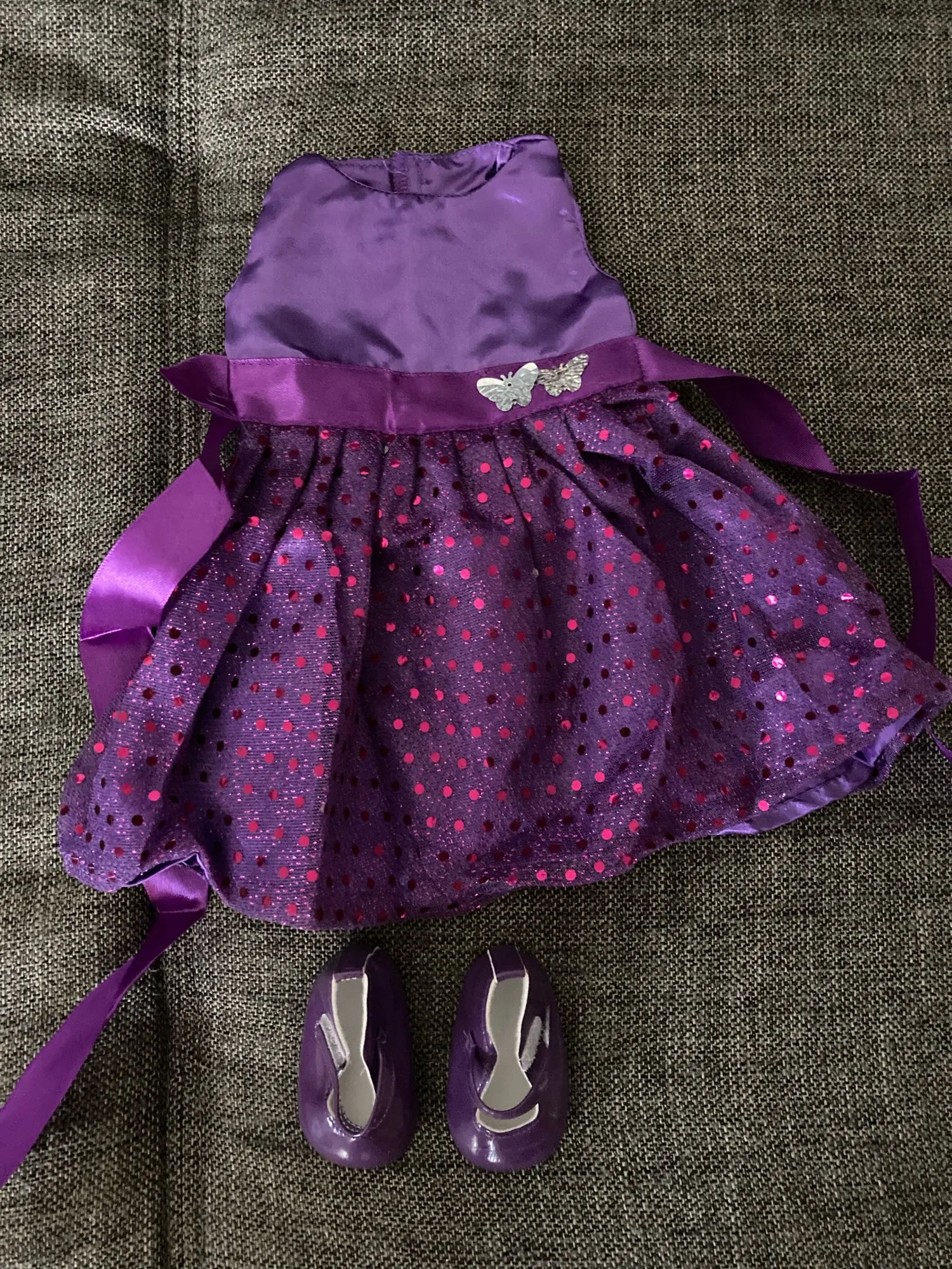 платье на куклу, нарядное.внутренние швы придется обметать, но за такую цену платье не плохое. мне понравилось. одели на советскую куклу и на готц подходит.