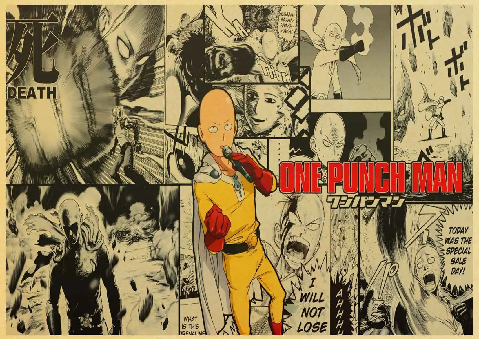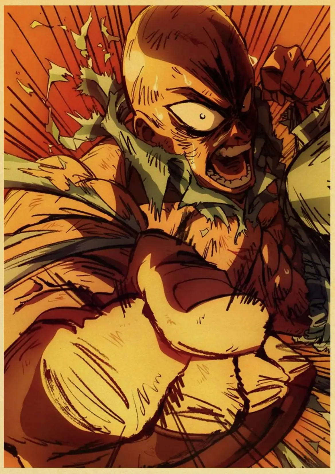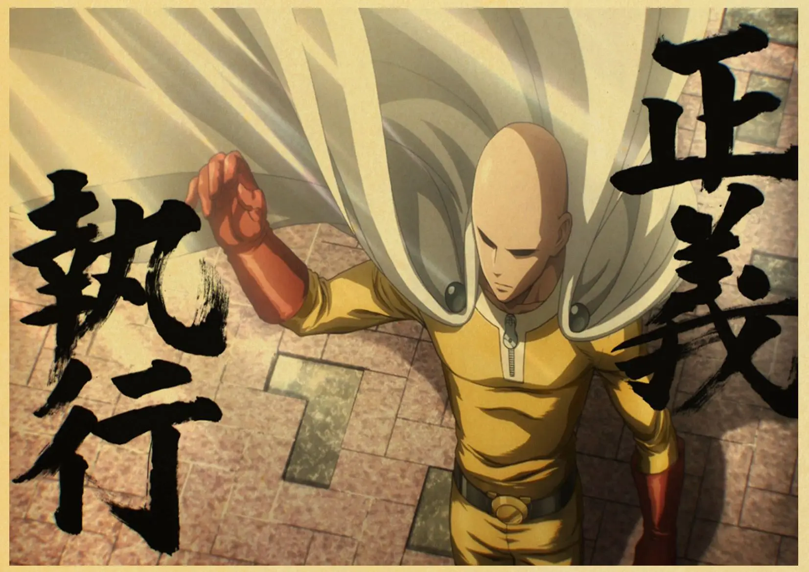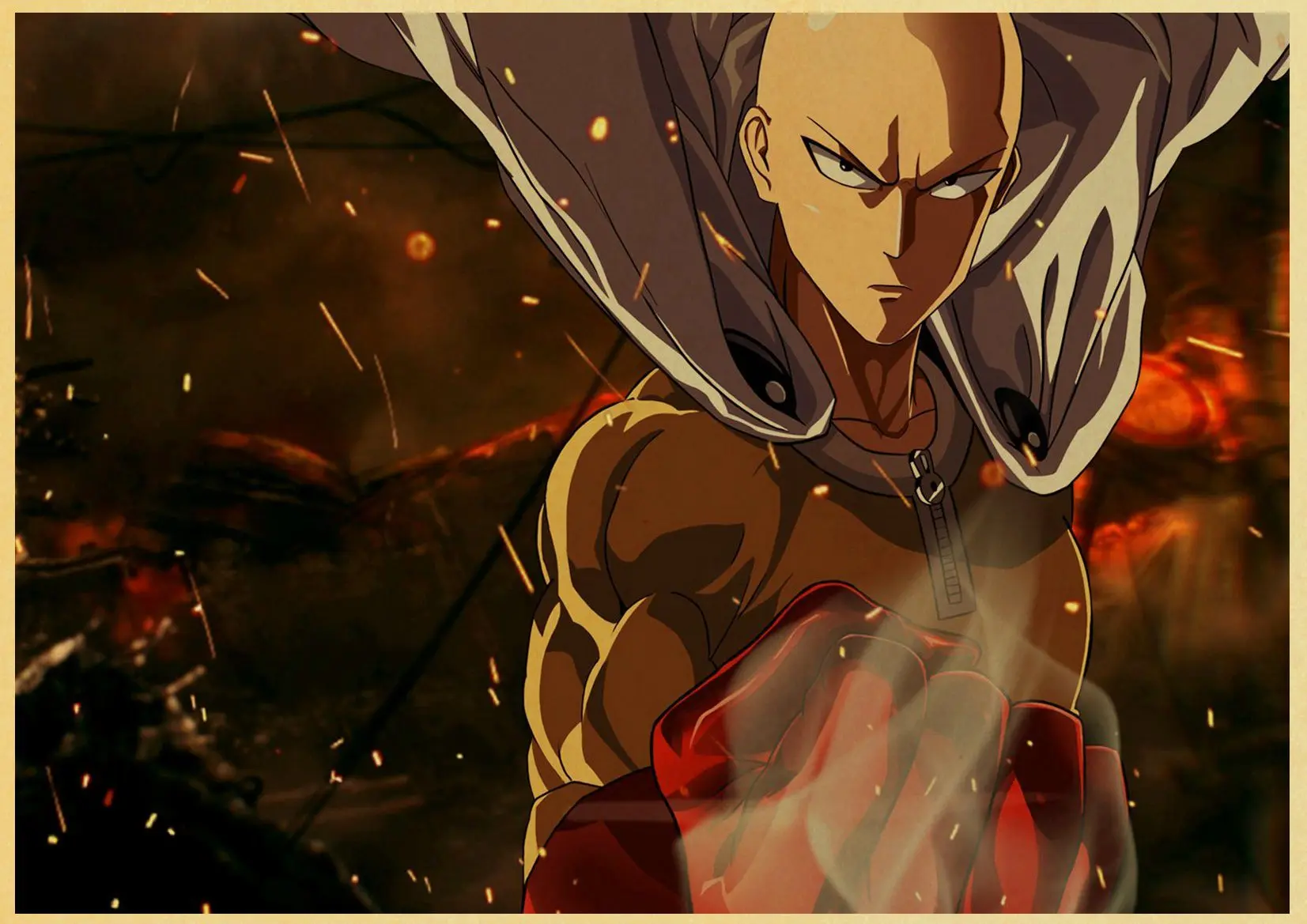 Постер с японским аниме один удар человек, Крутые Настенные стикеры в стиле ретро, винтажные принты для бара и домашнего декора