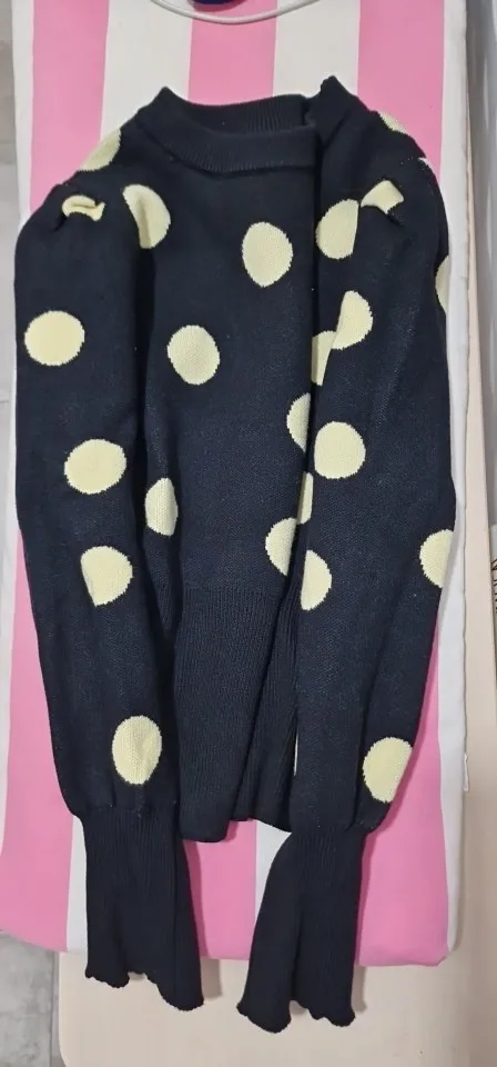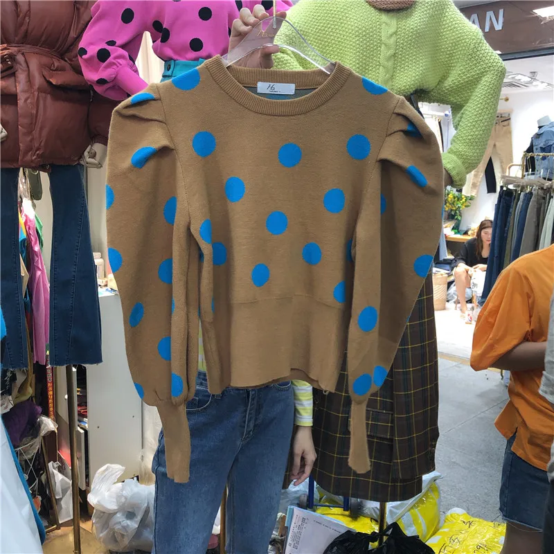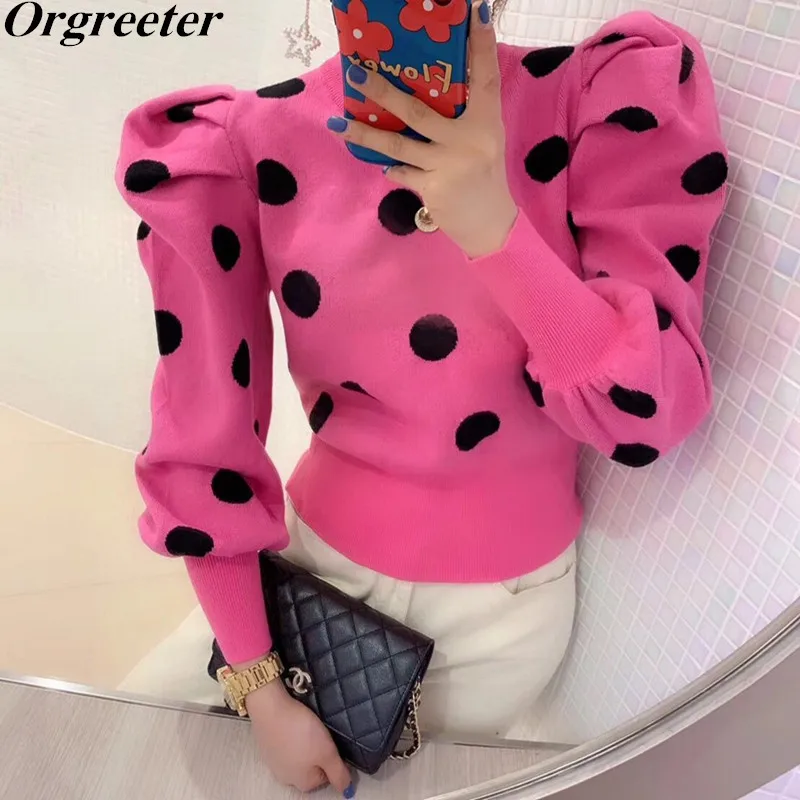 Женский свитер в горошек, пуловер с круглым вырезом и рюшами, Осень-зима 2021