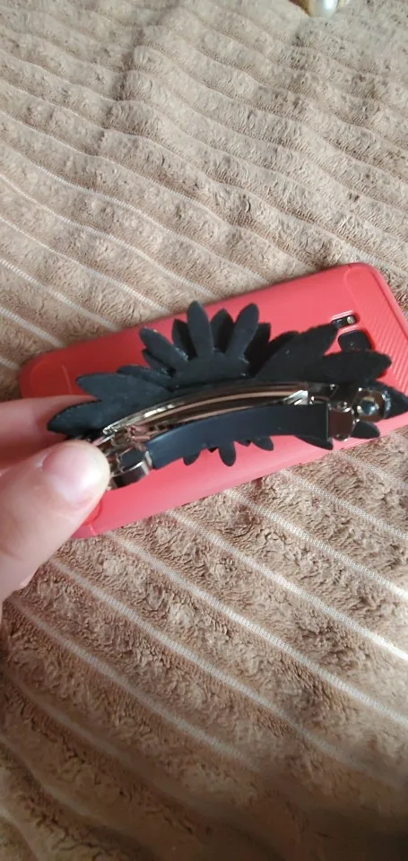 заколка красивая .хорошо держит волосы.но вот цвет ожидала более красный а он ближе к темно розовоиу