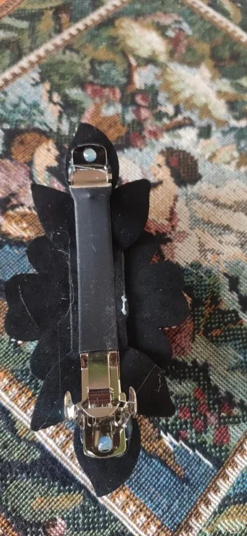 Заколка сделана с кожзам с комнями,выглядит симпотично