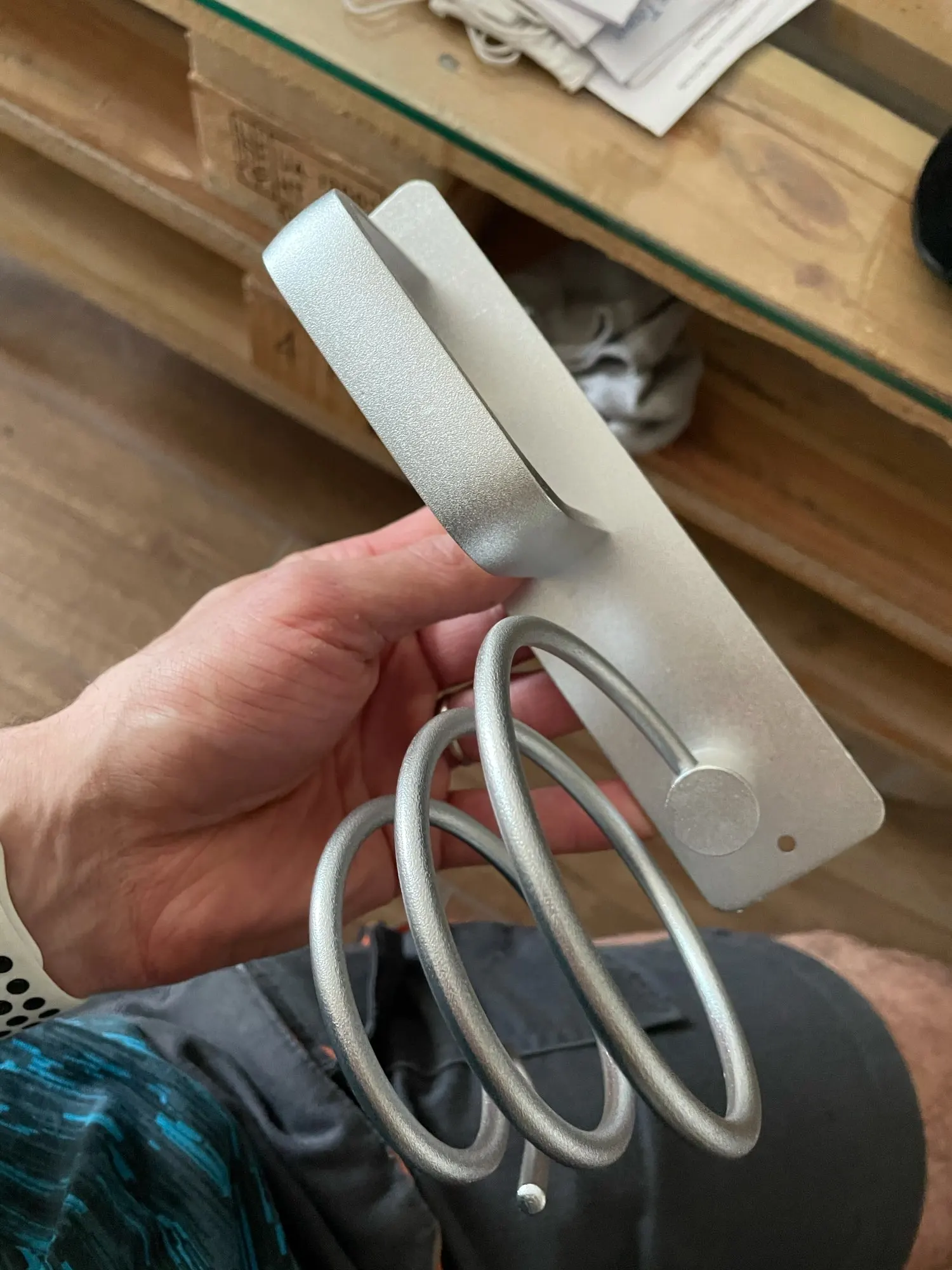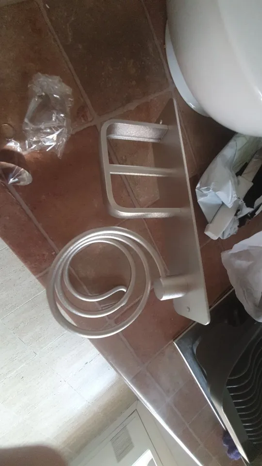 Заказываю у этого продавца второй раз, всё дошло целым. Насадка фена не влазила в нижнее кольцо, немного разжали и поместилось. В комплекте идут 2 шурупа и 2 дюбеля. Из-за сложности расположения, сверлить не получилось. Посадила на двусторонний скотч. Держится))) Всем давольна.