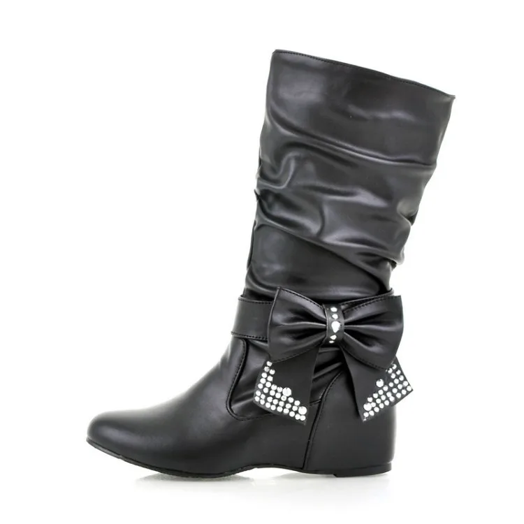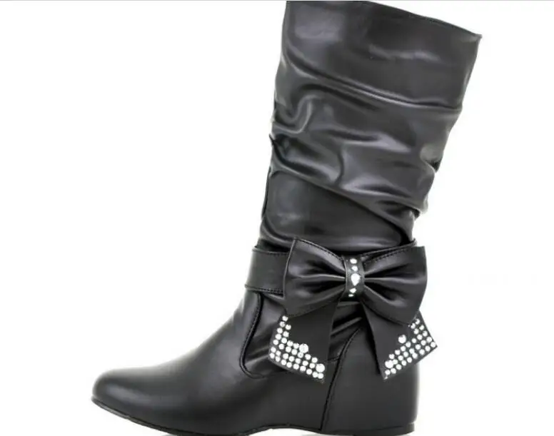 Пикантные Модные женские Ботинки демисезонные ботинки на плоской подошве с бантом женские ботинки до середины икры красного, черного и белого цвета Большие размеры