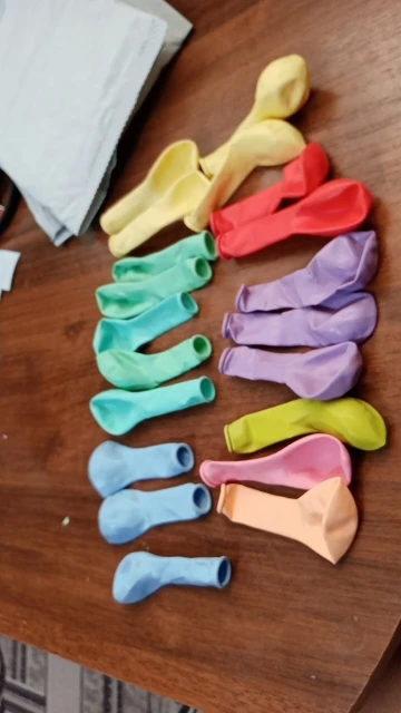 Воздушные шары хорошего качества, но в основном двух цветов, для других есть очень мало штук, даже 1. Невозможно сделать радугу, как на фотографиях. Разочарован.