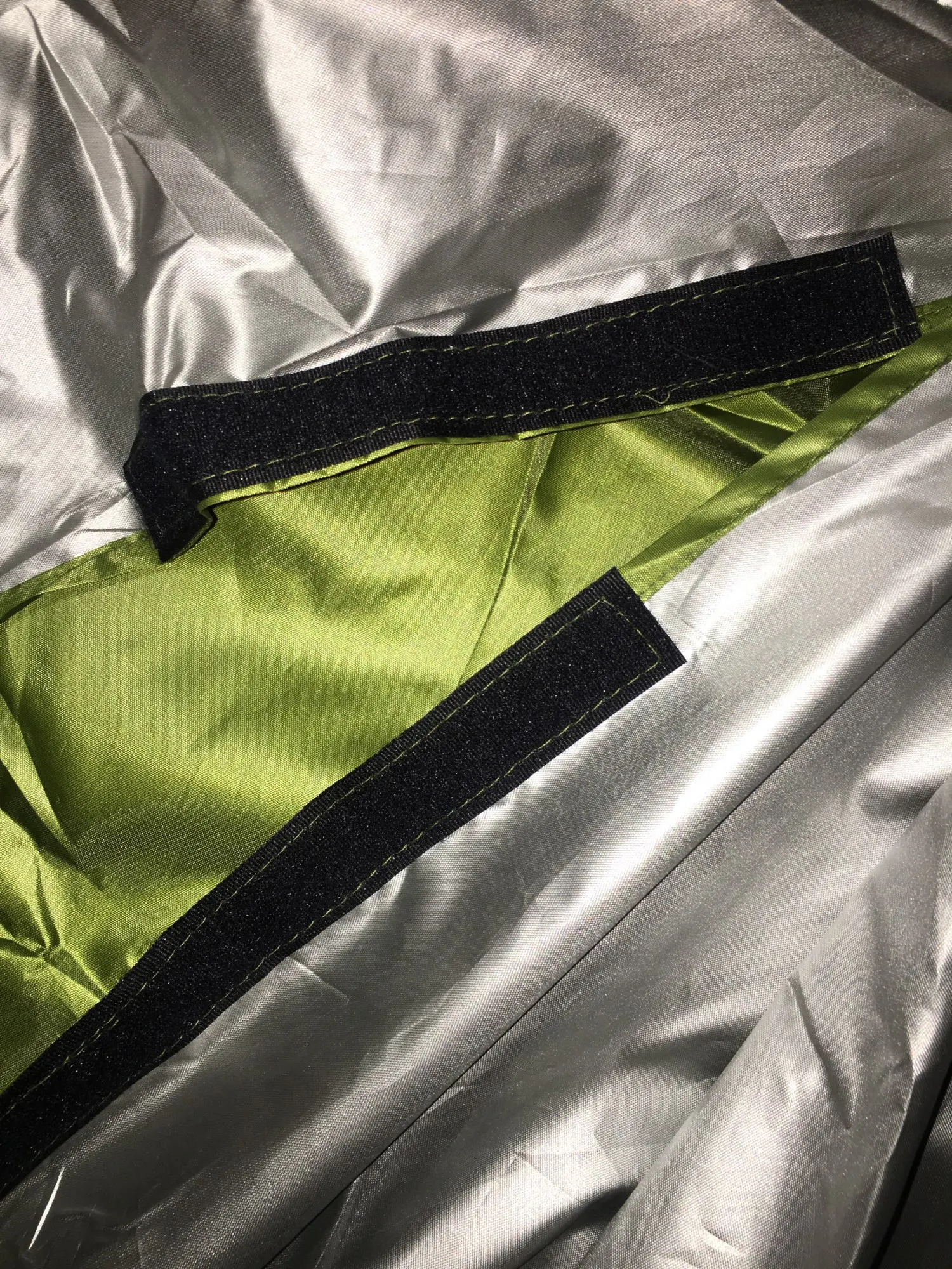 Большой, объёмный пончо в разложенном виде. Сгодится на рюкзак или плотную одежду. имеются ленты липучек под руки. Качество пошива оставляет желать лучшего. От сильного продолжительного дождя не поможет. Сильный химический запах из упаковки.