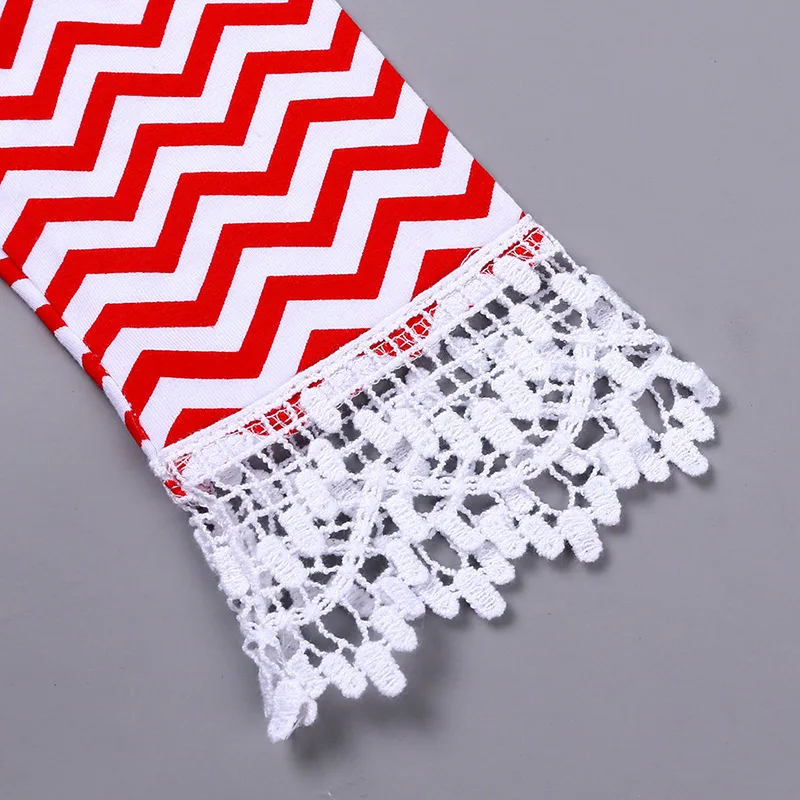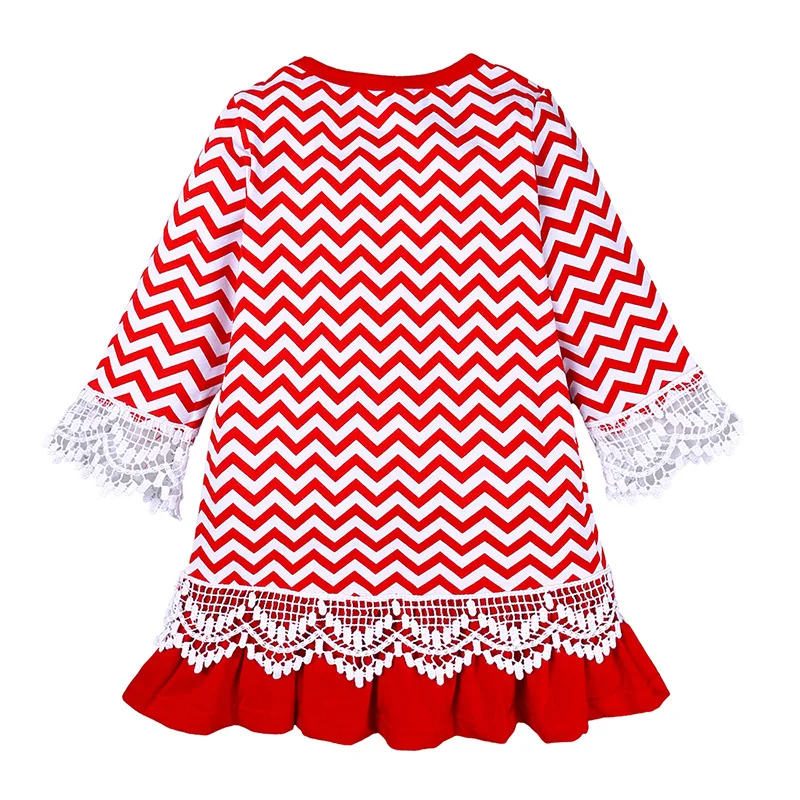 DesignRed ripple with print santa claus imagen,white lace on cuff and hem