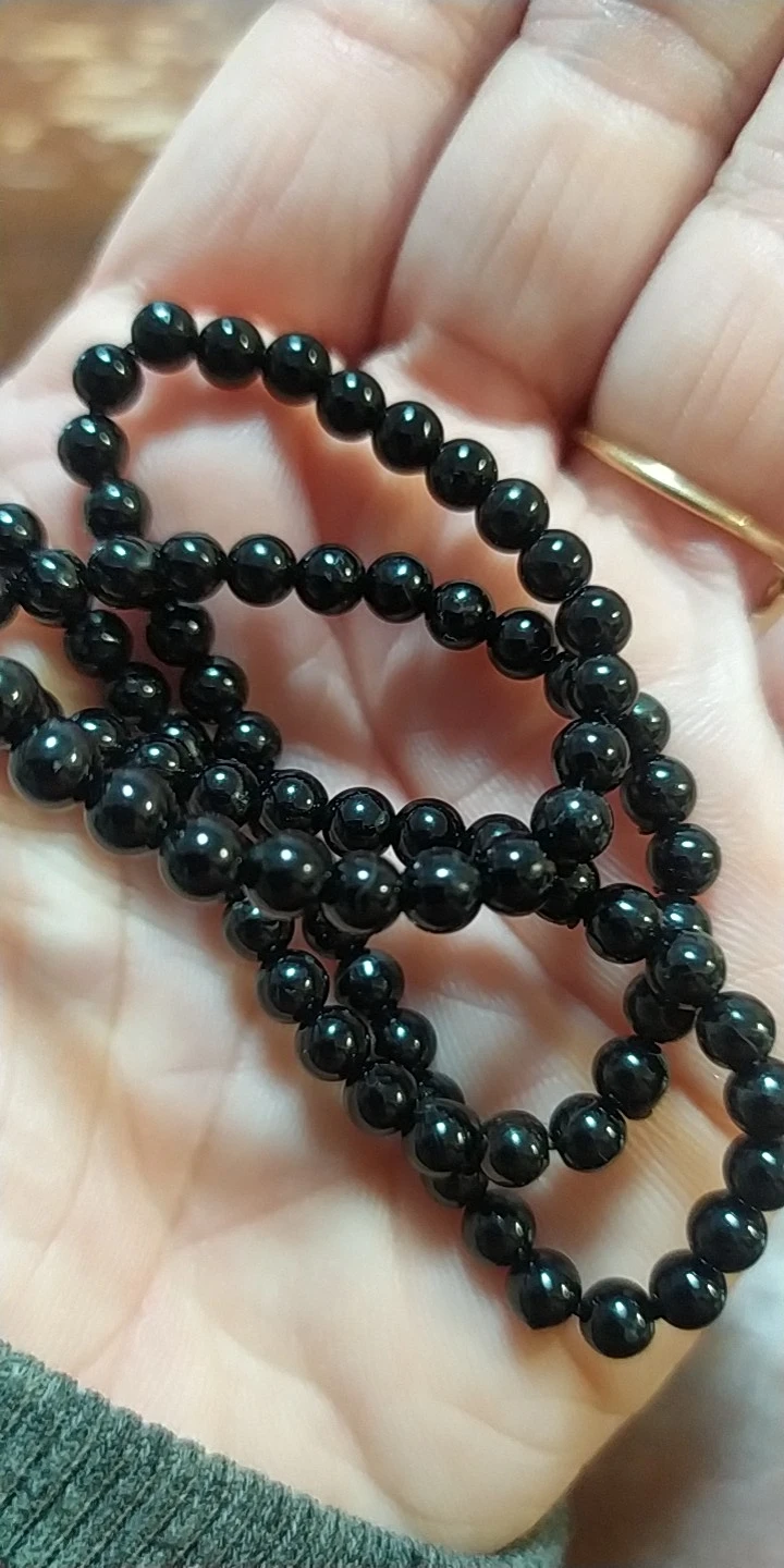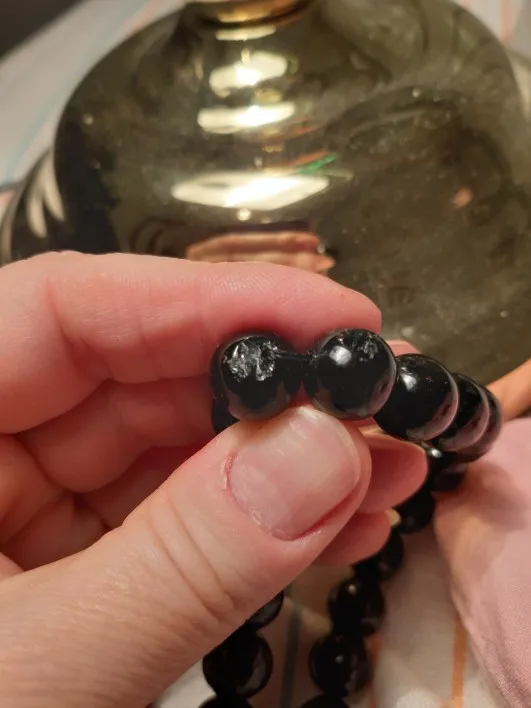 Я сломал бусину молотком, чтобы увидеть камень и понять, действительно ли это черный турмалин. Все в порядке