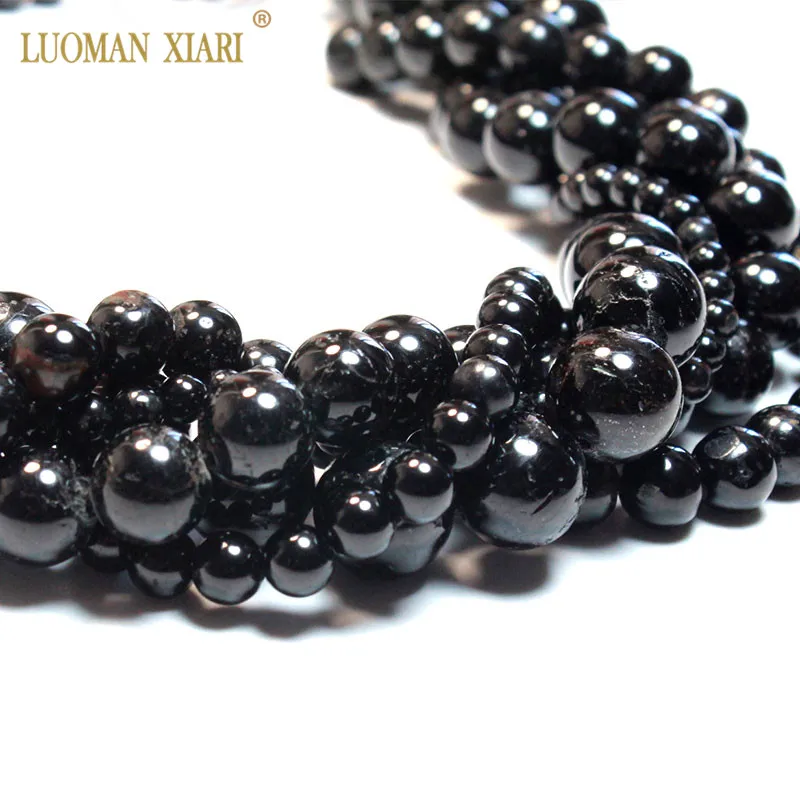 Круглые бусины из 100% натурального черного турмалина для изготовления ювелирных изделий, 4681012 мм