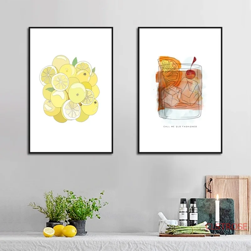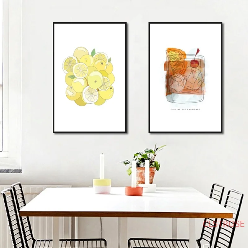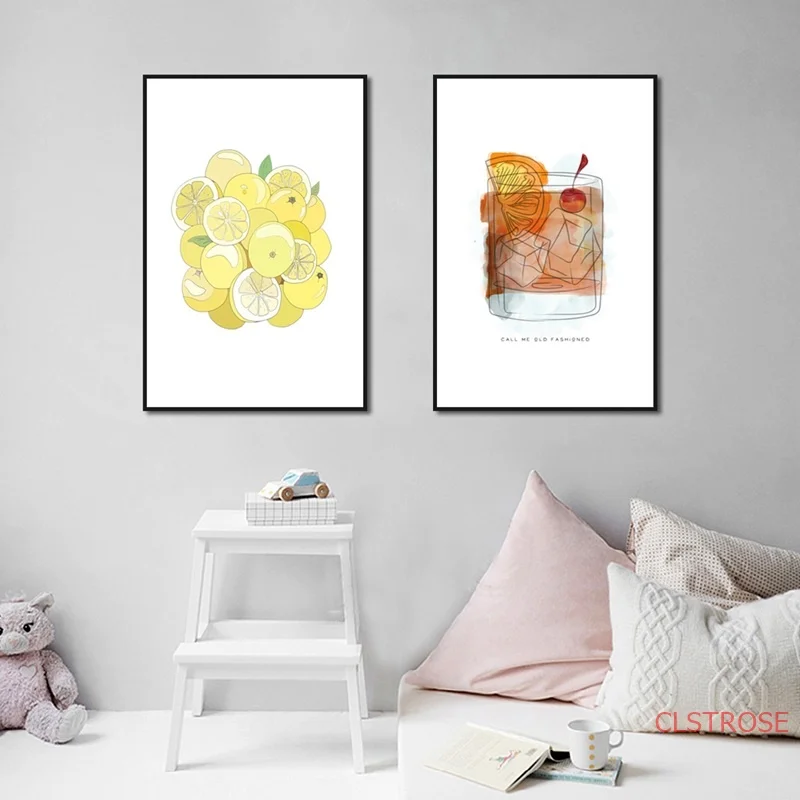Декоративная картина в виде лимонного напитка в ресторане, скандинавские Мультяшные холщовые постеры и принты, домашняя кухня, декоративные настенные картины