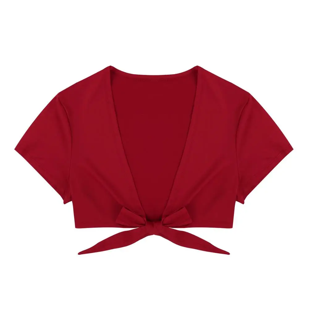 Женский укороченный топ для танцев шеста, короткий рукав, Глубокий V-образный вырез, открытая передняя часть, болеро, кардиган, укороченный топ, обтягивающая рубашка, пикантная одежда