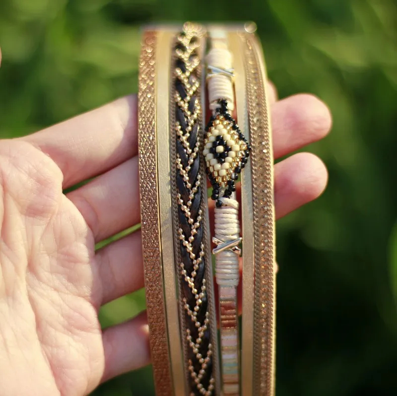 Кожаные браслеты для женщин Amorcome Miyuki от сглаза, широкий браслет с подвесками в богемном стиле, Ювелирное Украшение для вечеринки, подарок