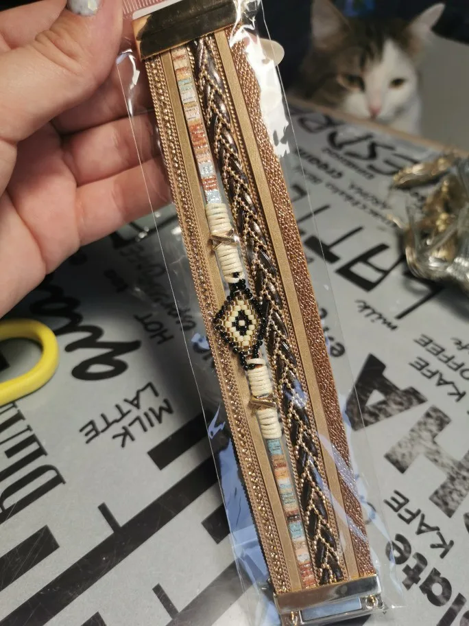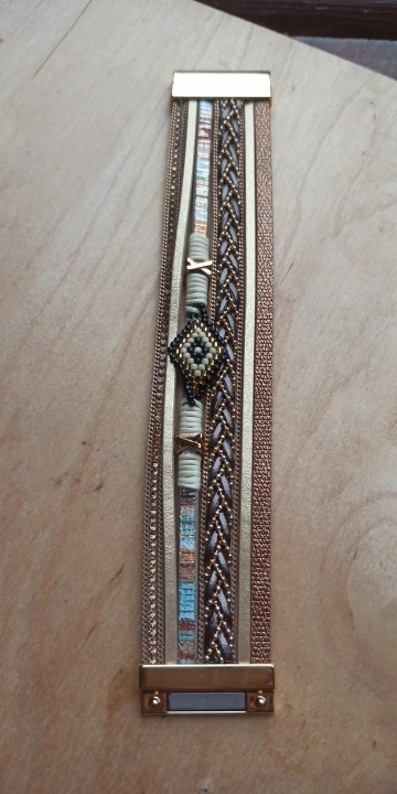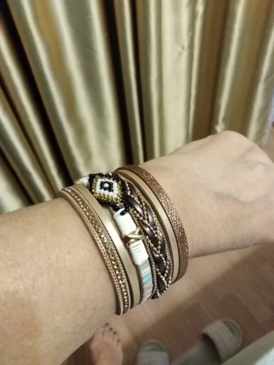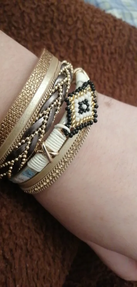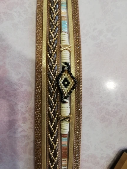 очень симпатичный браслет. Смотрится здорово. Но сразу порвался. нужно немного закрепить элементы. носить буду