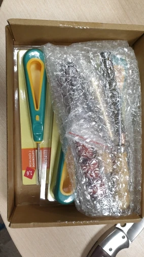 Пришло быстро, в почтовый ящик. Для разовых работ годится, а так, ручка не для большой лапы профессионалов.