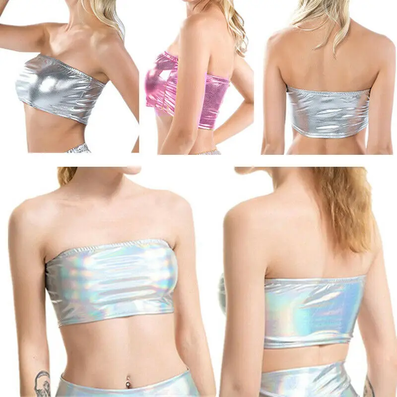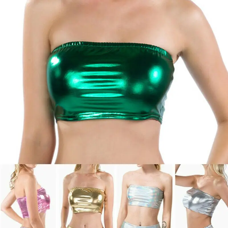Женская модная индивидуальная металлическая Майка без бретелек, однотонный бюстье, укороченный топ-труба, товары для вечерние и клубов