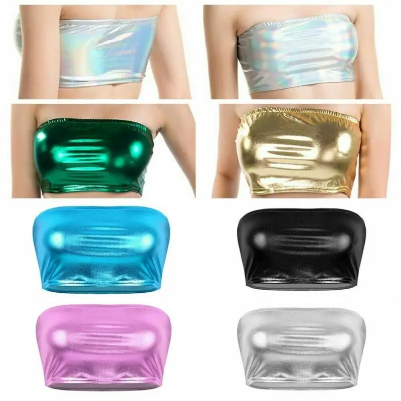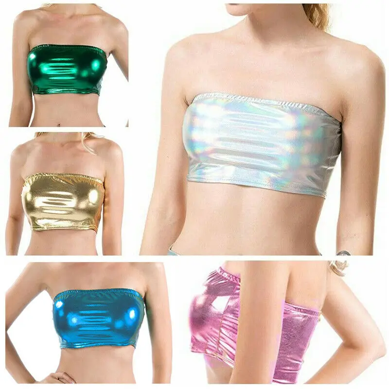 Женский Бюстгальтер-бандо на груди, дышащий, мягкий и удобный в носке.С открытыми плечами, без бретелек и без подкладки, легкий и очень легко носить.Надежная посадка, стильный и блестящий металлический материал, легко сделает вас выдающимся и привлекательнымИдеально подходит для танцев, музыкальных фестивалей, костюмов, вечерние, Клубные или бредовые наряды и т. д.Пожалуйста, проверьте размер перед покупкой, ручная стирка только в холодной воде.
