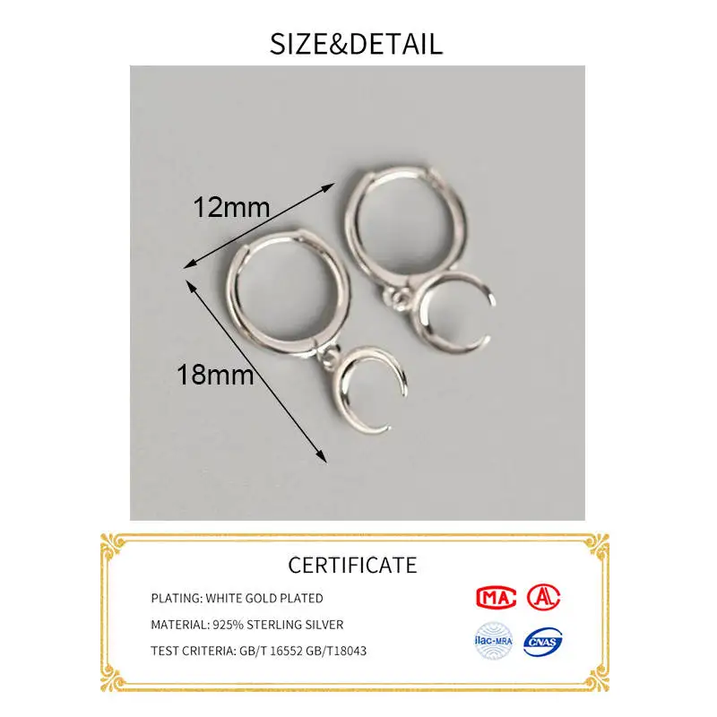 Женские серьги-кольца в виде Луны из серебра 925 пробы