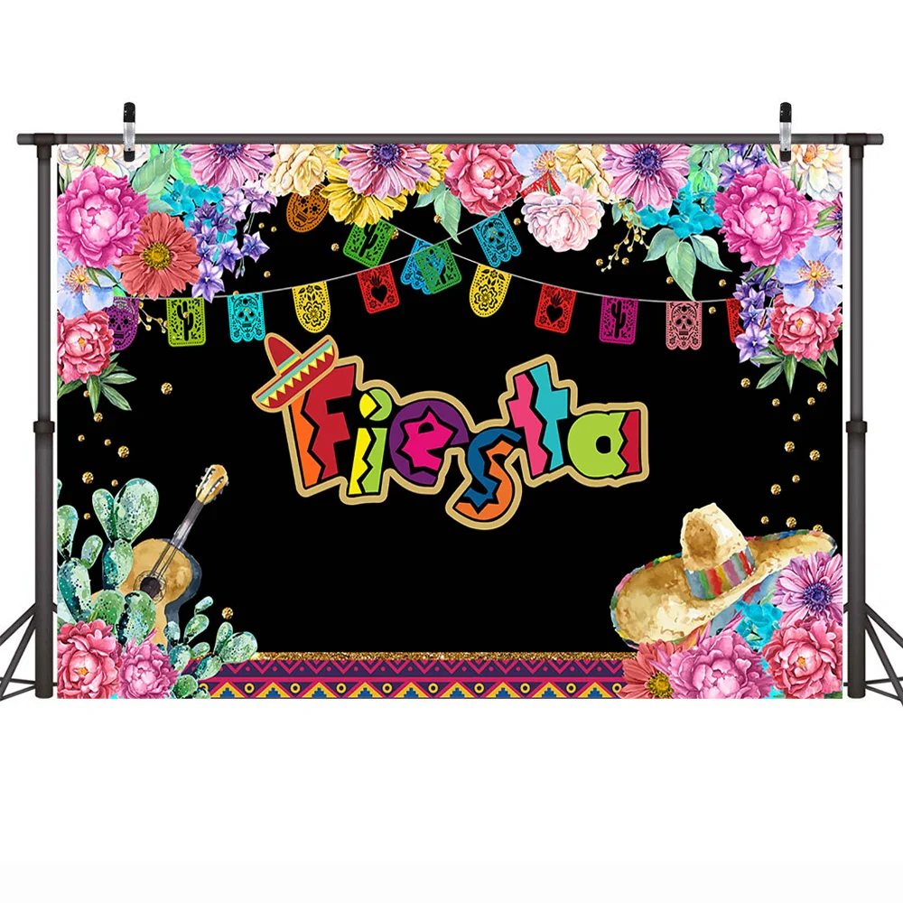 Праздничный день рождения, фон для фотографии, Мексиканский фон для фотосъемки новорожденных детей, мексиканские красочные цветы, гитарная Кепка