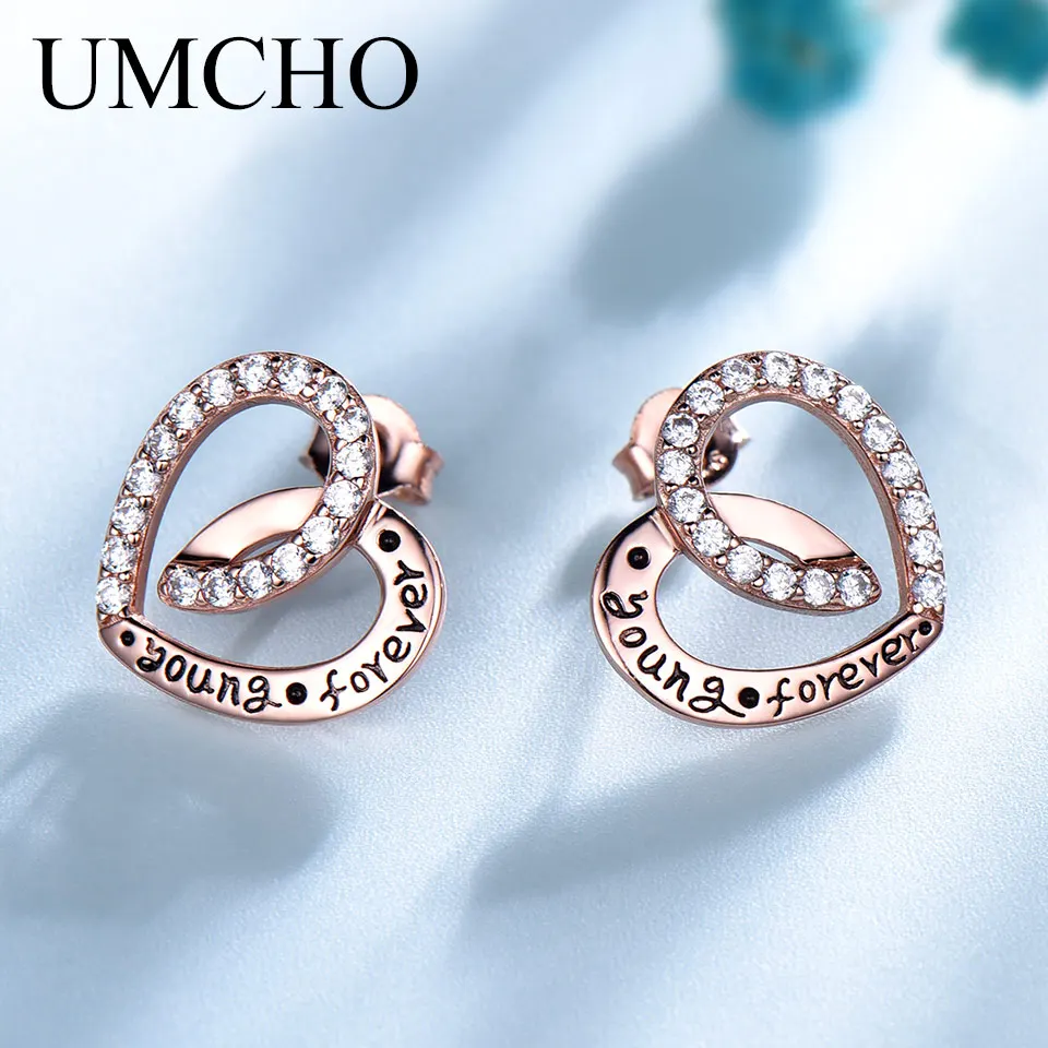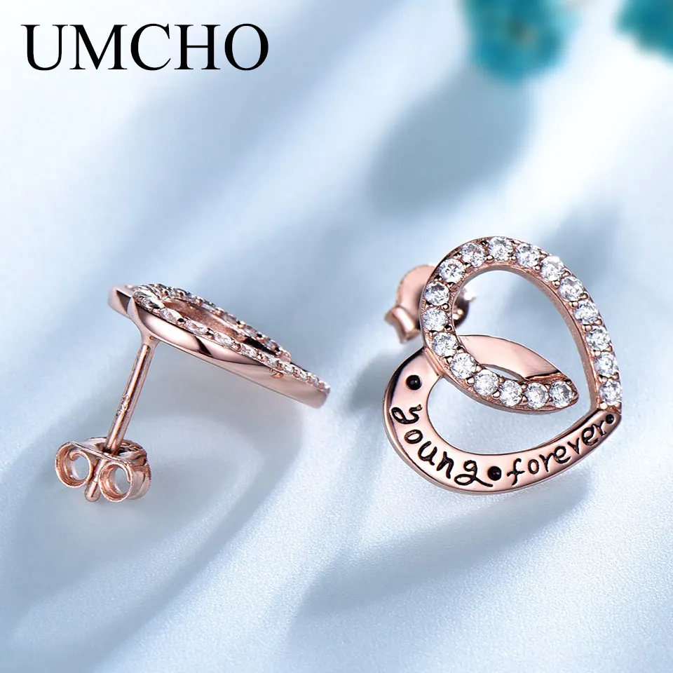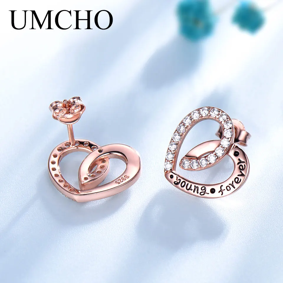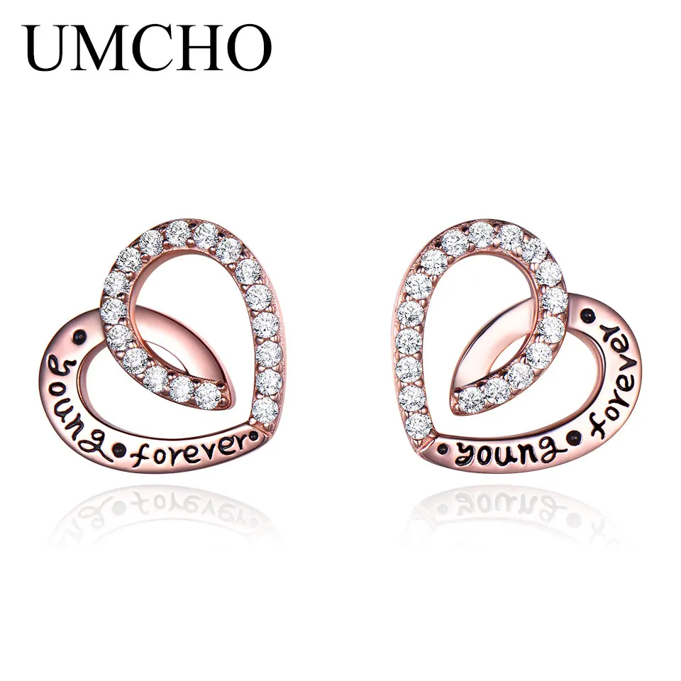 UMCHO 925 пробы, серебряные серьги-гвоздики для мамы, серьги-гвоздики в форме сердца, Подарок на годовщину, хорошее ювелирное изделие
