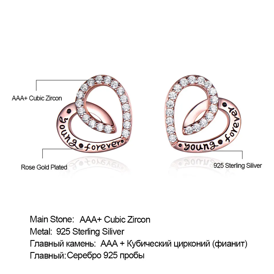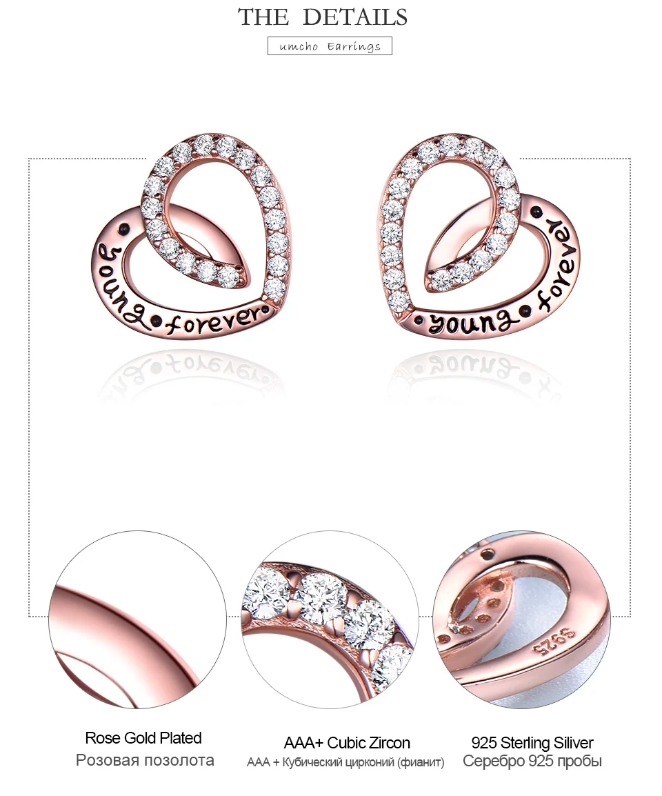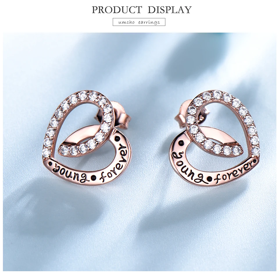 UMCHO 925 пробы, серебряные серьги-гвоздики для мамы, серьги-гвоздики в форме сердца, Подарок на годовщину, хорошее ювелирное изделие